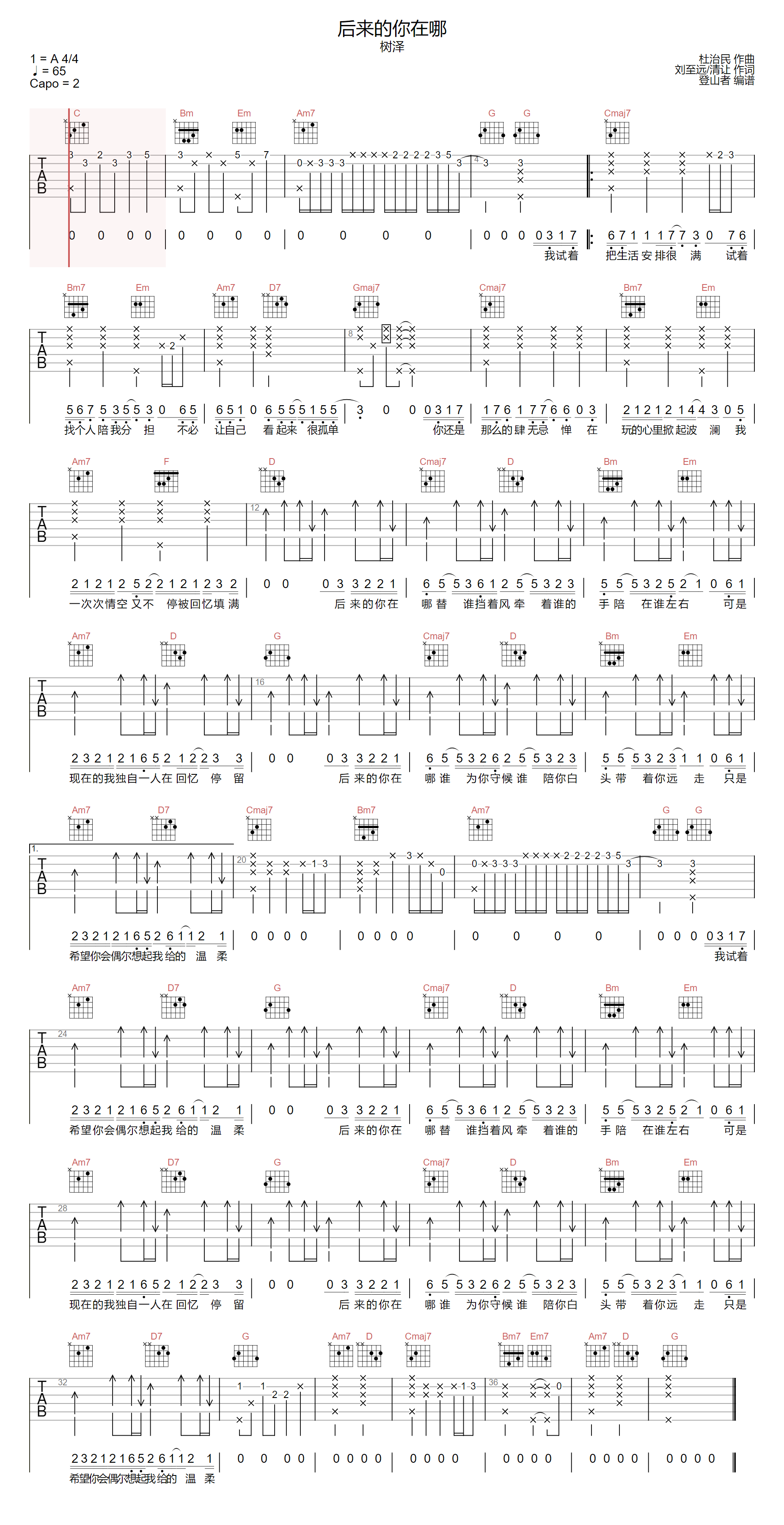 后来的你在哪吉他谱 - 树泽 - G调吉他弹唱谱 - 原版