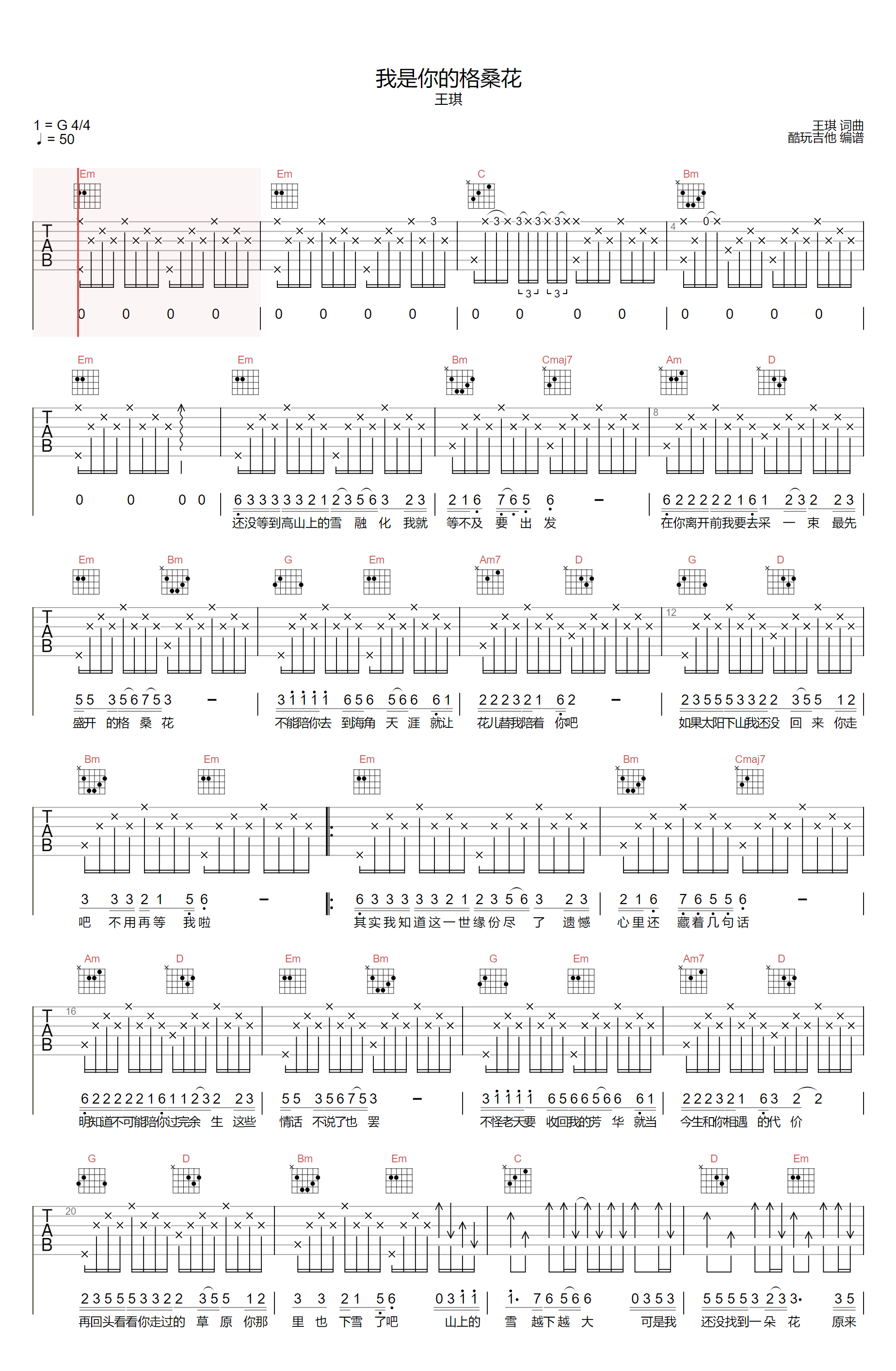 我是你的格桑花吉他谱 - 王琪 - G调吉他弹唱谱 - 原版
