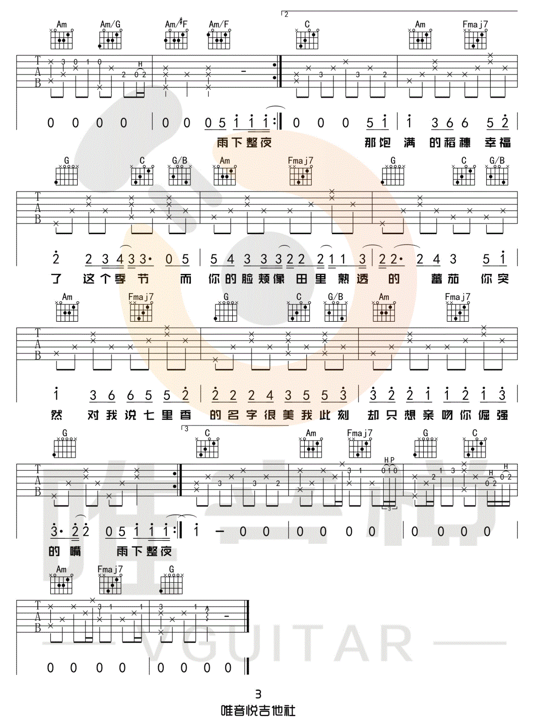 当前位置:琴谱网>吉他弹唱>七里香