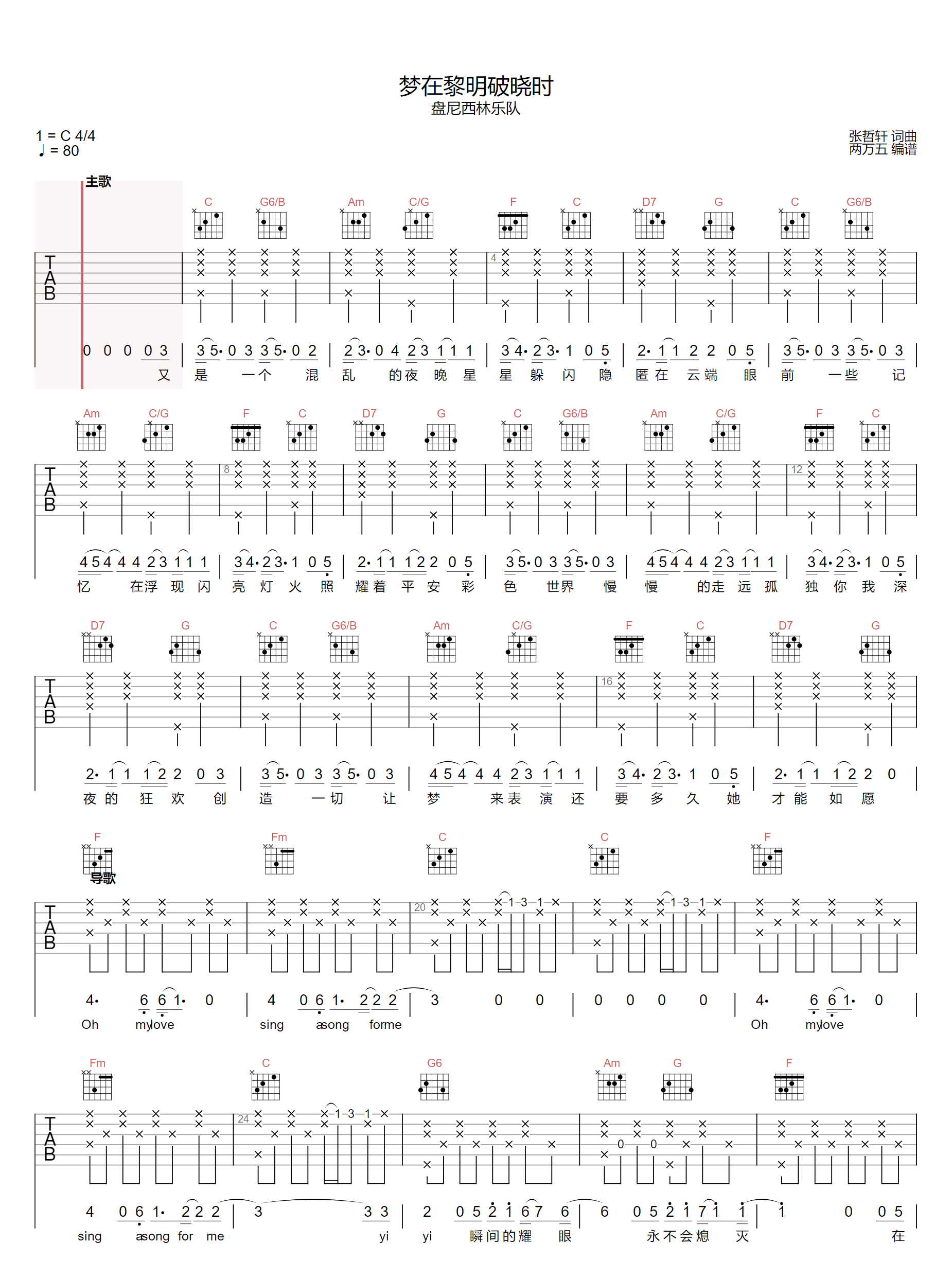 当前位置:琴谱网>吉他弹唱>梦在黎明破晓时