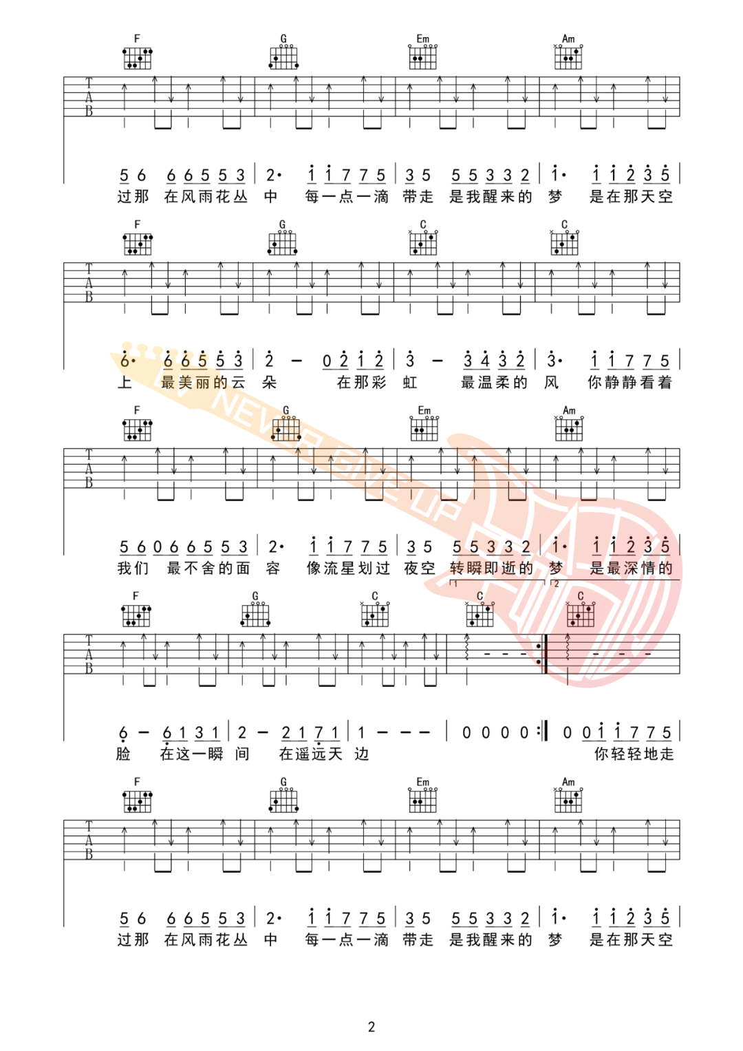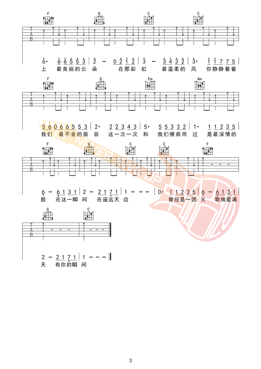最美的瞬间吉他谱 - 真瑞 - C调吉他弹唱谱 - 原版
