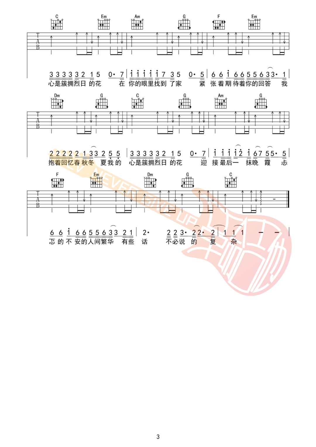 当前位置:琴谱网>吉他弹唱>簇拥烈日的花
