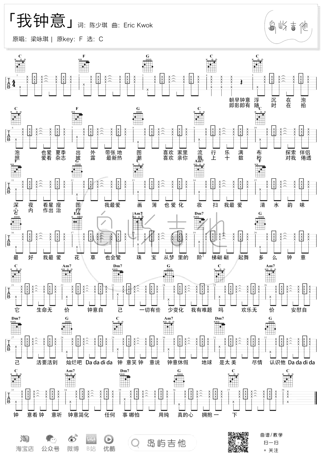 当前位置:琴谱网>吉他弹唱>我钟意
