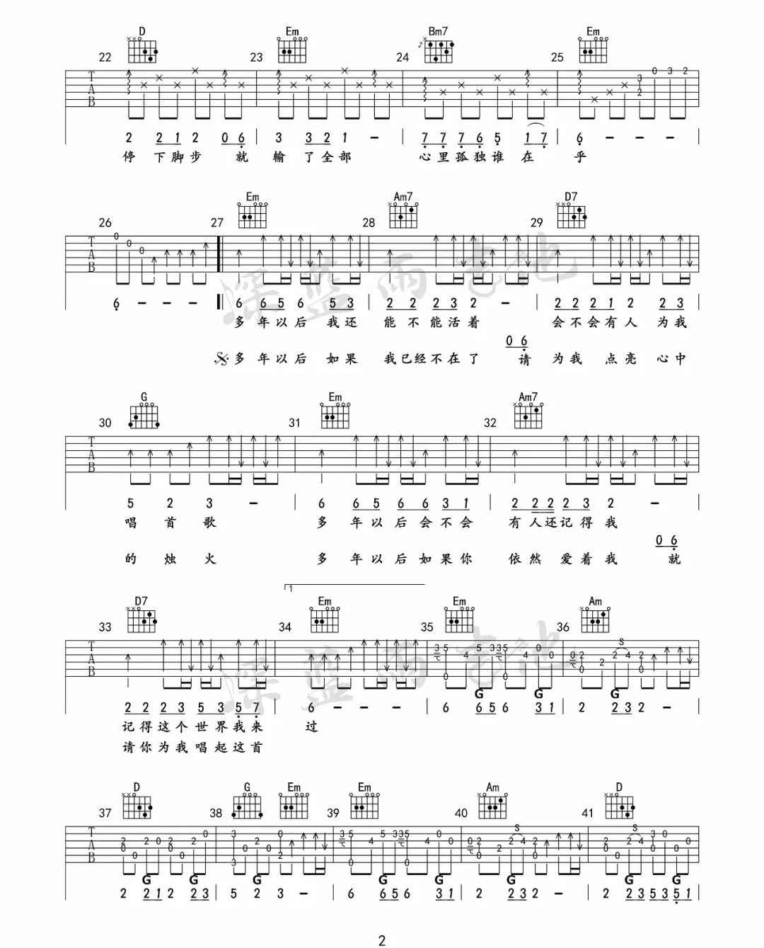 当前位置:琴谱网>吉他弹唱>多年以后