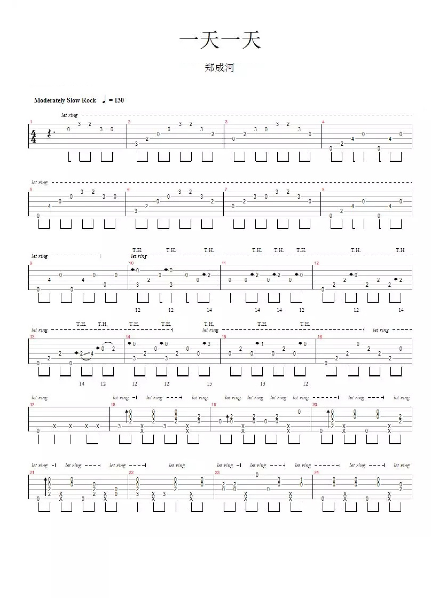 一天一天吉他谱 - 郑成河 - 吉他独奏谱