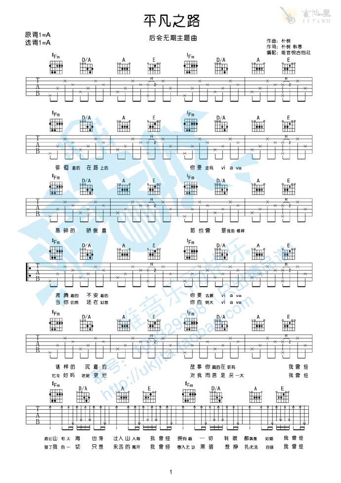 当前位置:琴谱网>吉他弹唱>平凡之路