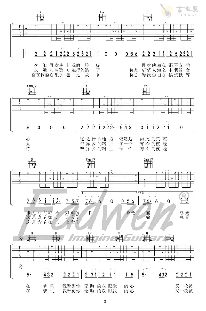 当前位置:琴谱网>吉他弹唱>故乡