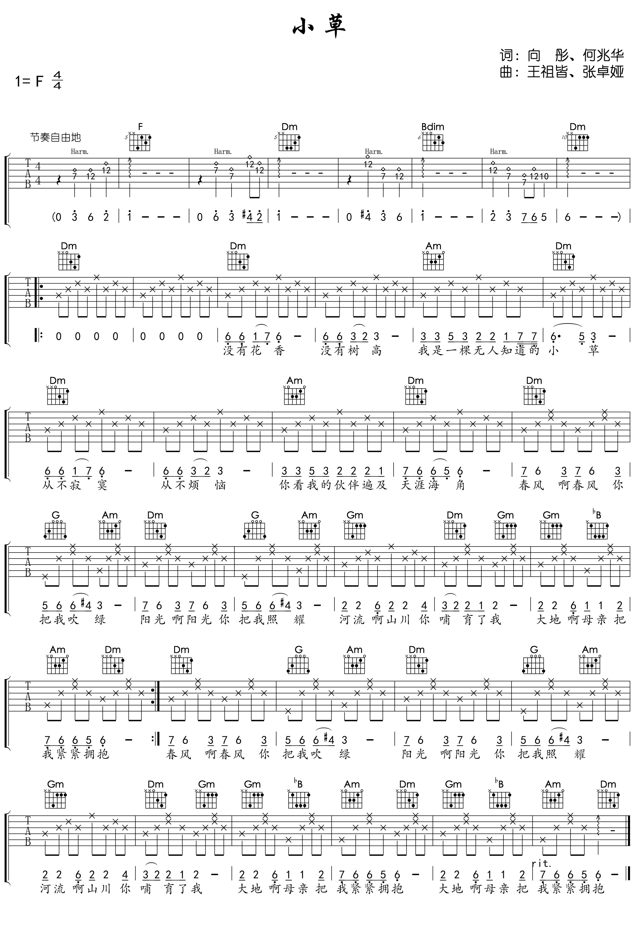 小草吉他谱 - 房新华 - F调吉他弹唱谱