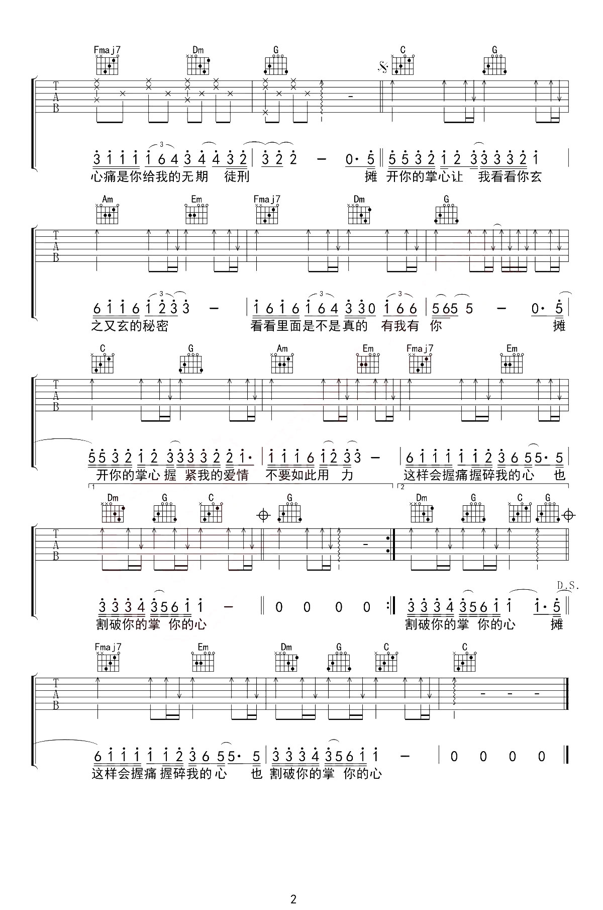 当前位置:琴谱网>吉他弹唱>掌心