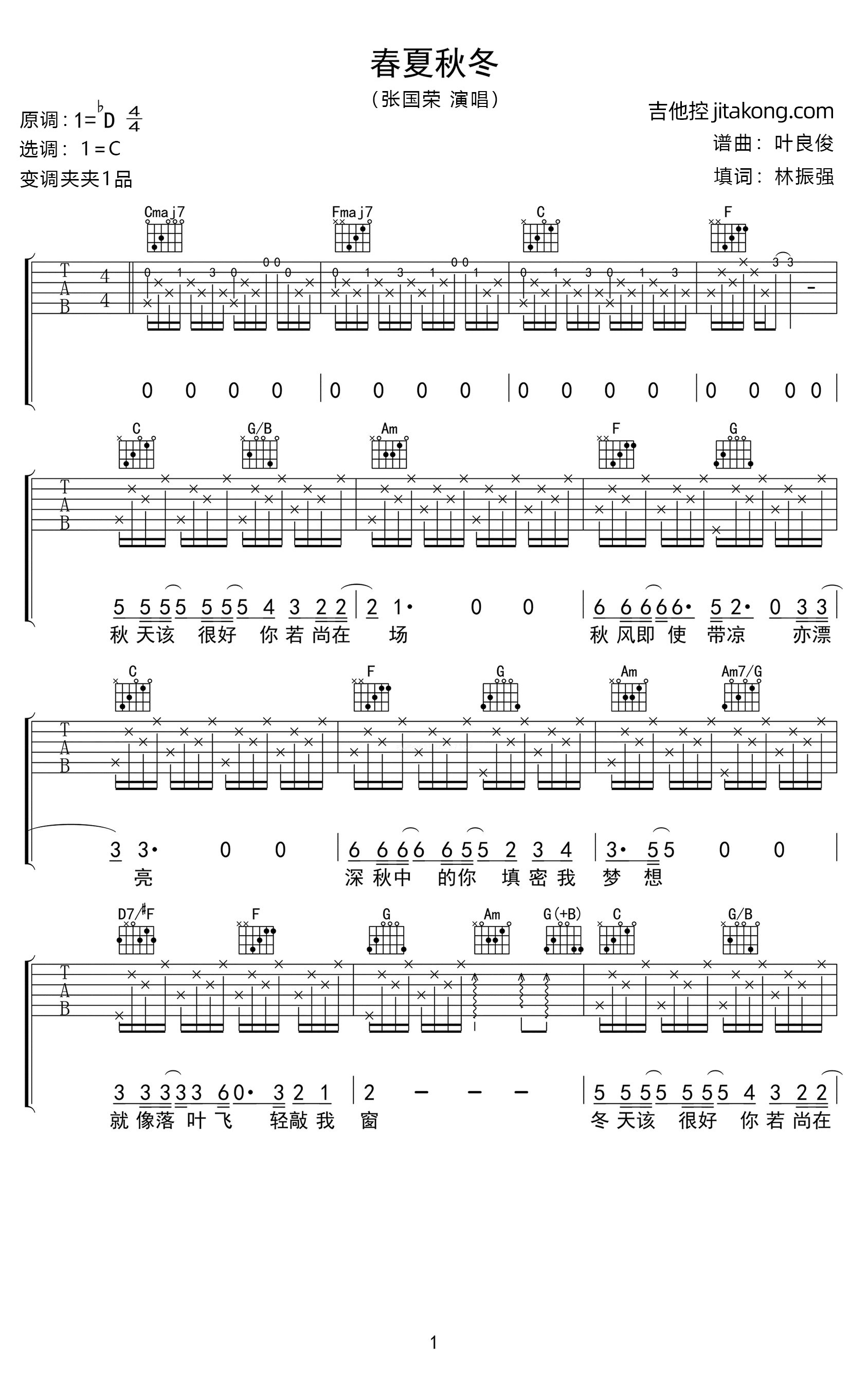 春夏秋冬吉他谱 - 张国荣 - C调吉他弹唱谱 - 原版
