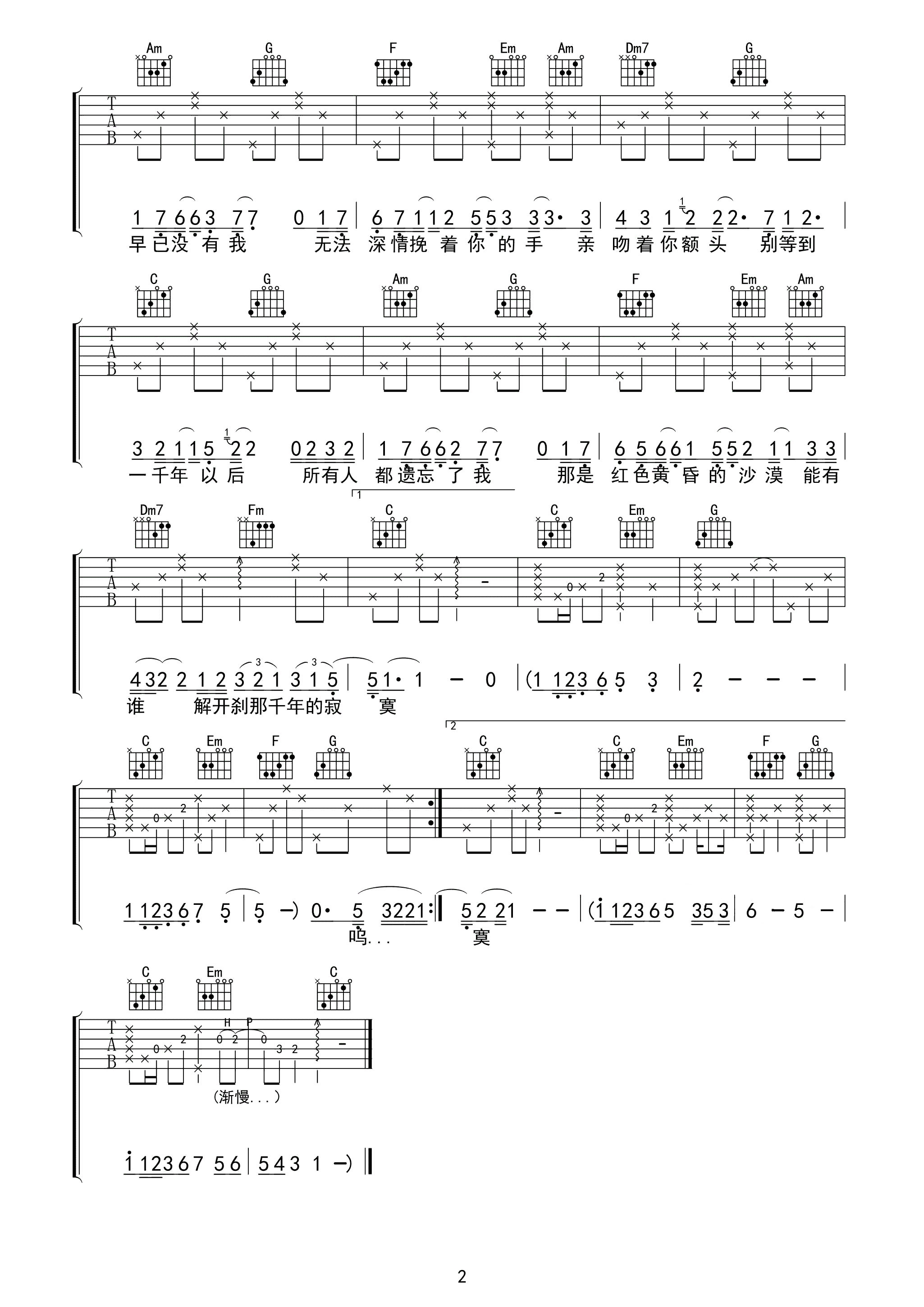 当前位置:琴谱网>吉他弹唱>一千年以后