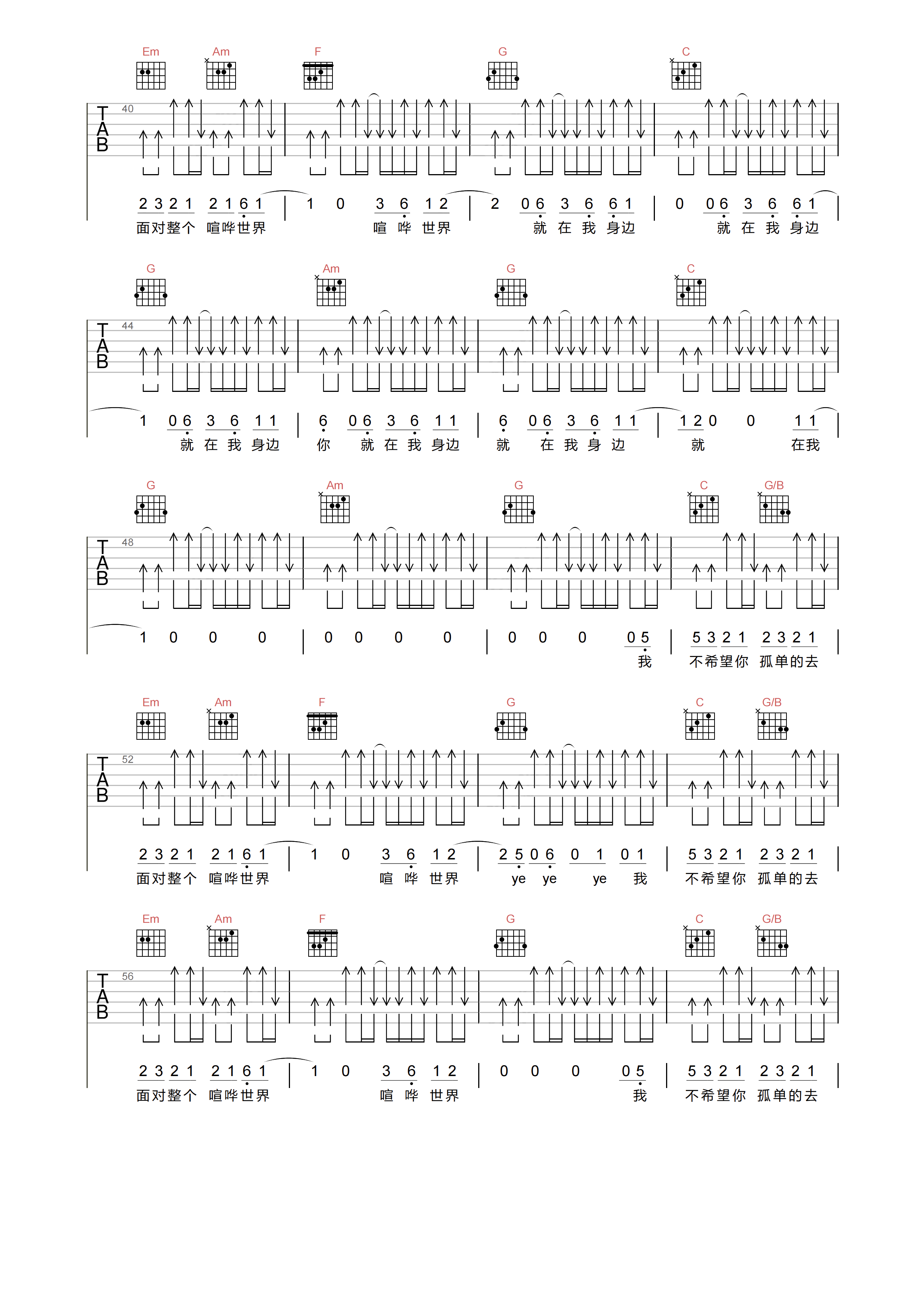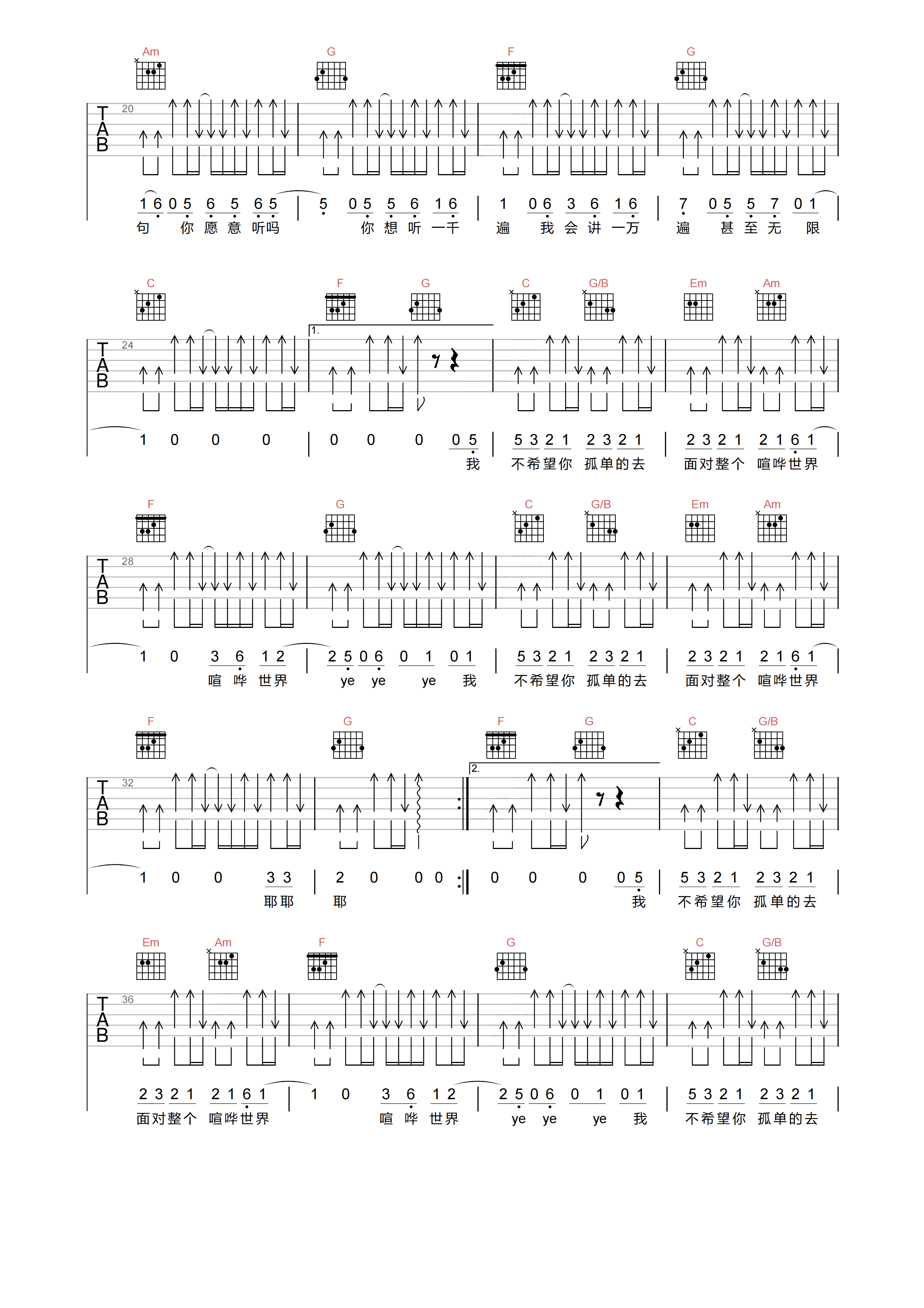 当前位置:琴谱网>吉他弹唱>我不希望你孤单的去面对整个喧哗世界