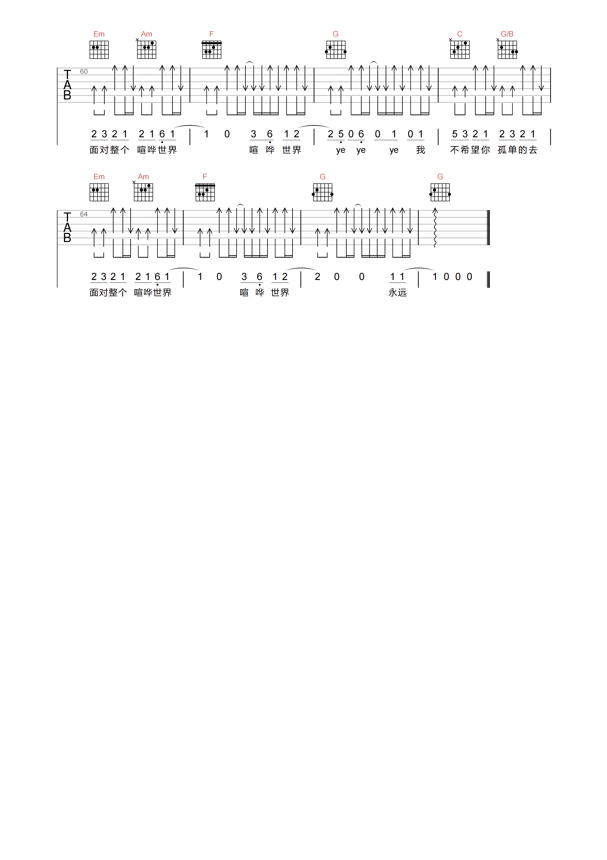 琴谱网为您精心推荐 我不希望你孤单的去面对整个喧哗世界 高清图谱