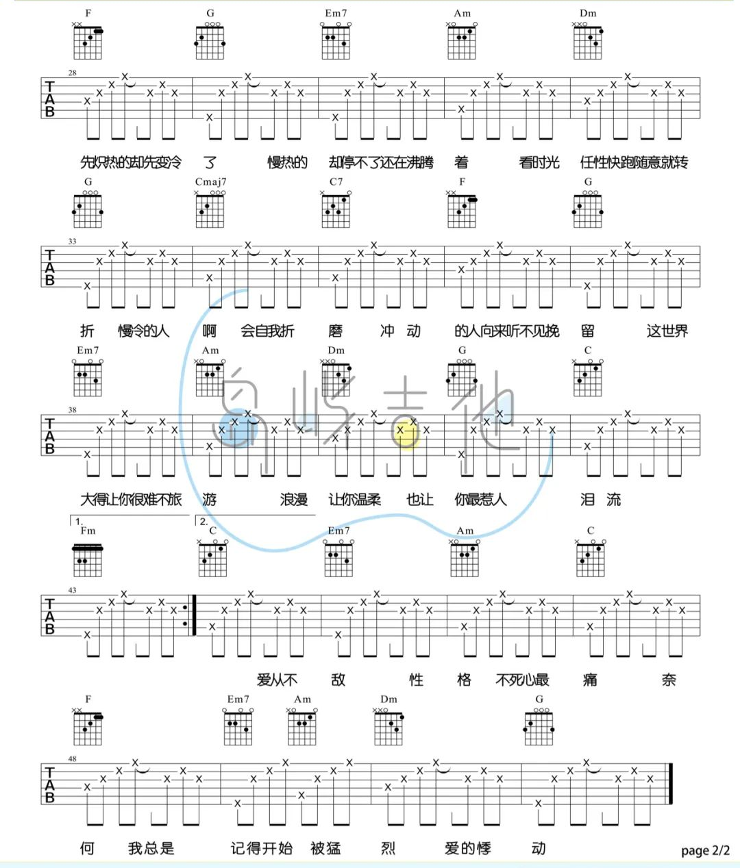 当前位置:琴谱网>吉他弹唱>慢冷