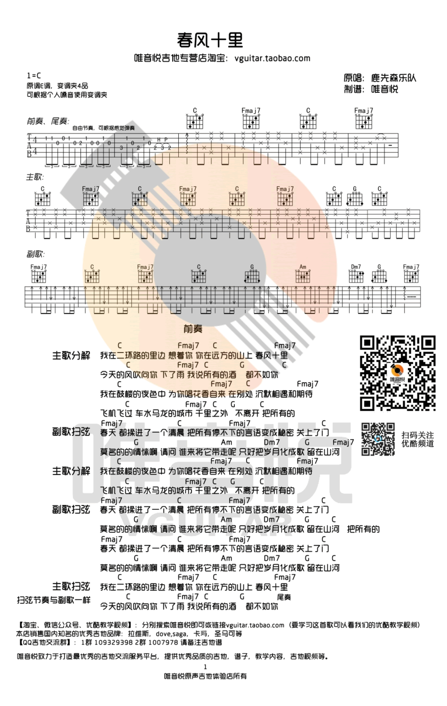 吉他弹唱C调来源:唯音悦4759 浏览2018-03-19 13:34发布图谱共1页