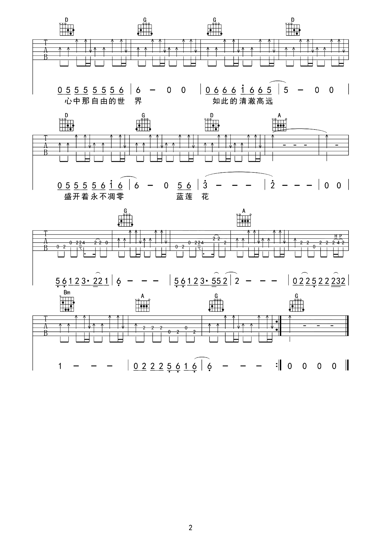 蓝莲花吉他谱 - 许巍 - D调吉他弹唱谱 - 原版