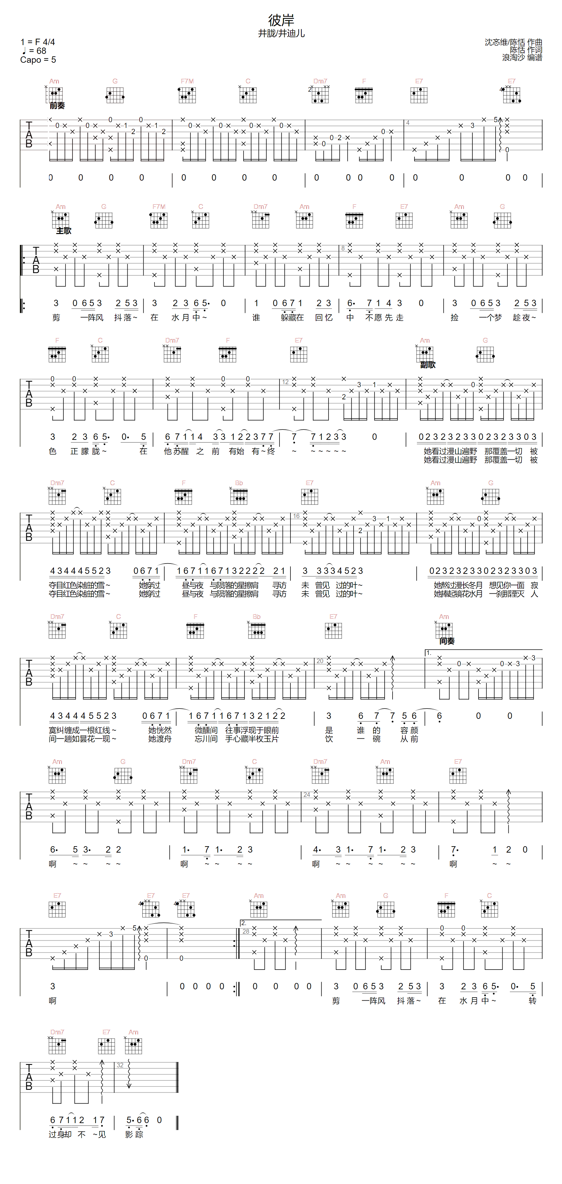 当前位置:琴谱网>吉他弹唱>彼岸