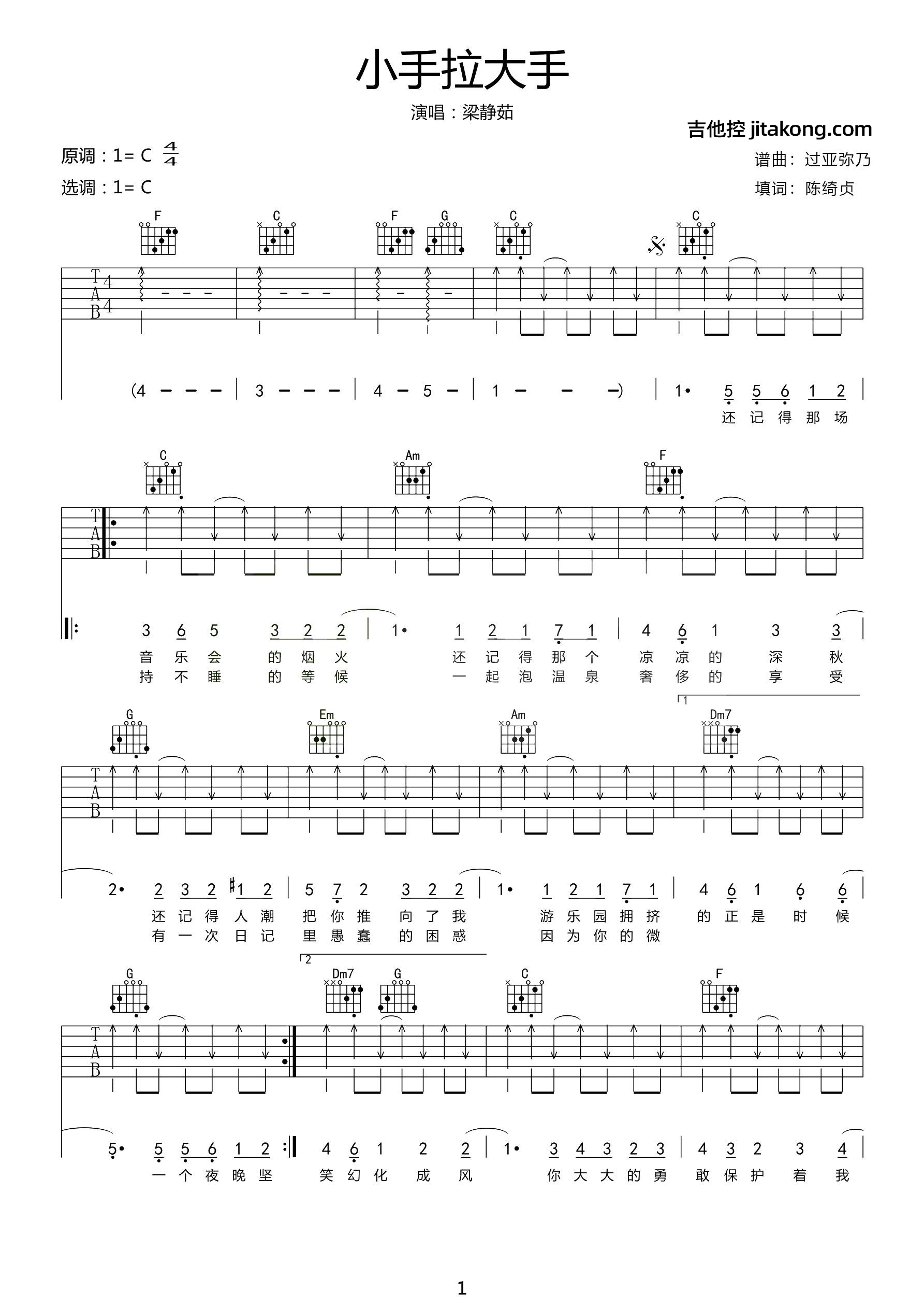 小手拉大手吉他谱 - 梁静茹 - C调吉他弹唱谱 - 原版