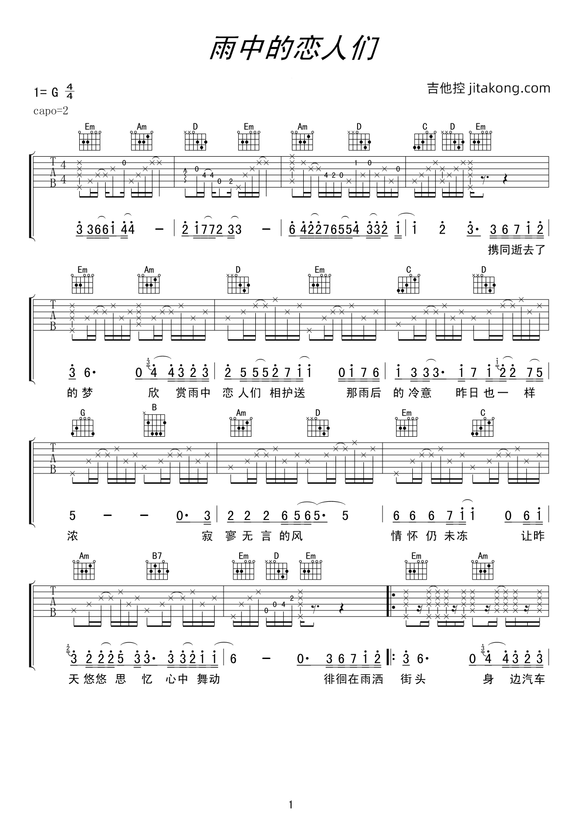 当前位置:琴谱网>吉他弹唱>雨中的恋人们
