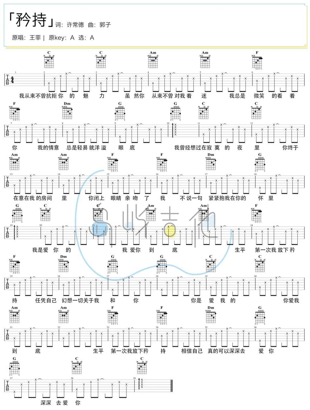 矜持吉他谱 - 王菲 - A调吉他弹唱谱