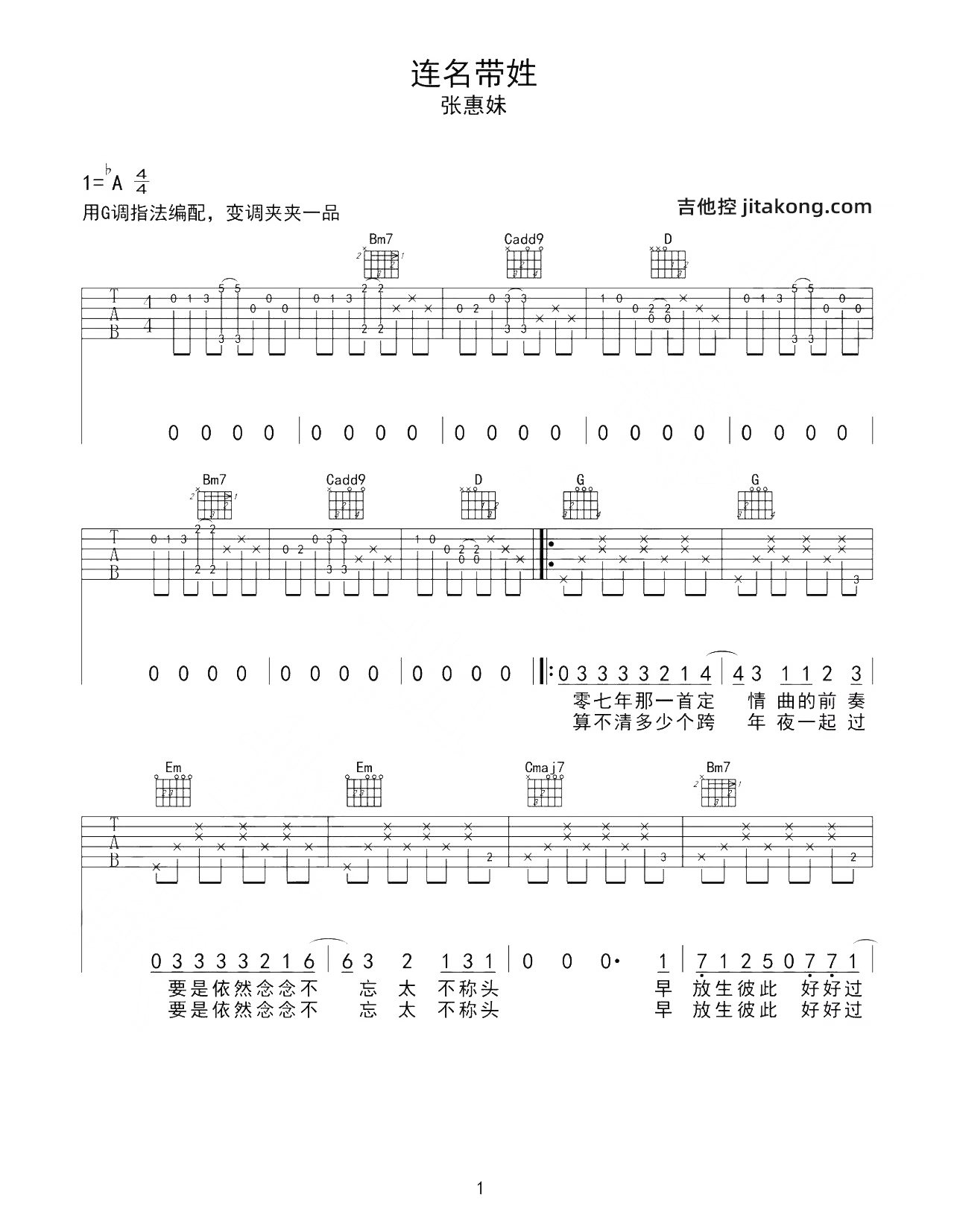 连名带姓吉他谱 - 张惠妹 - G调吉他弹唱谱 - 原版