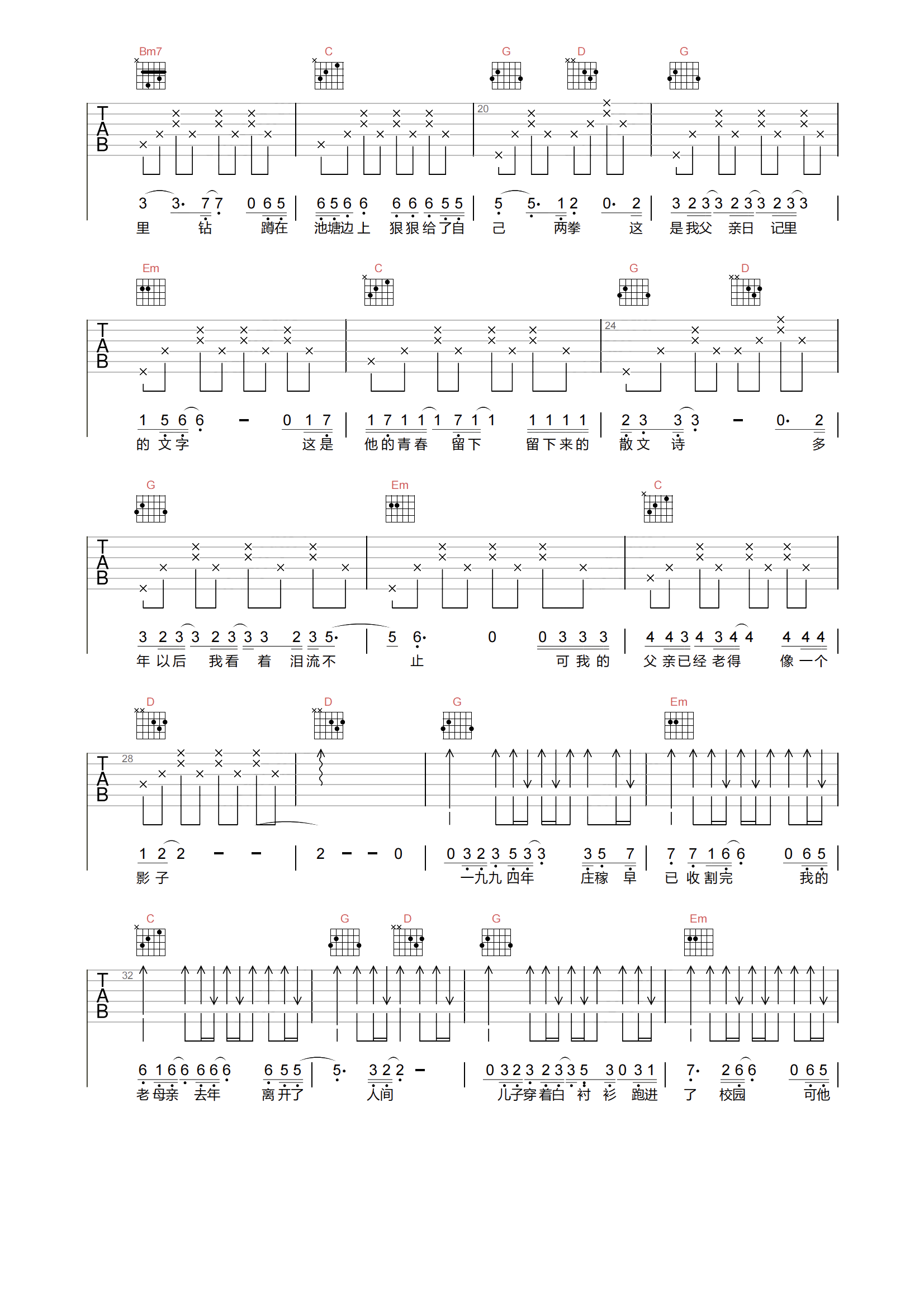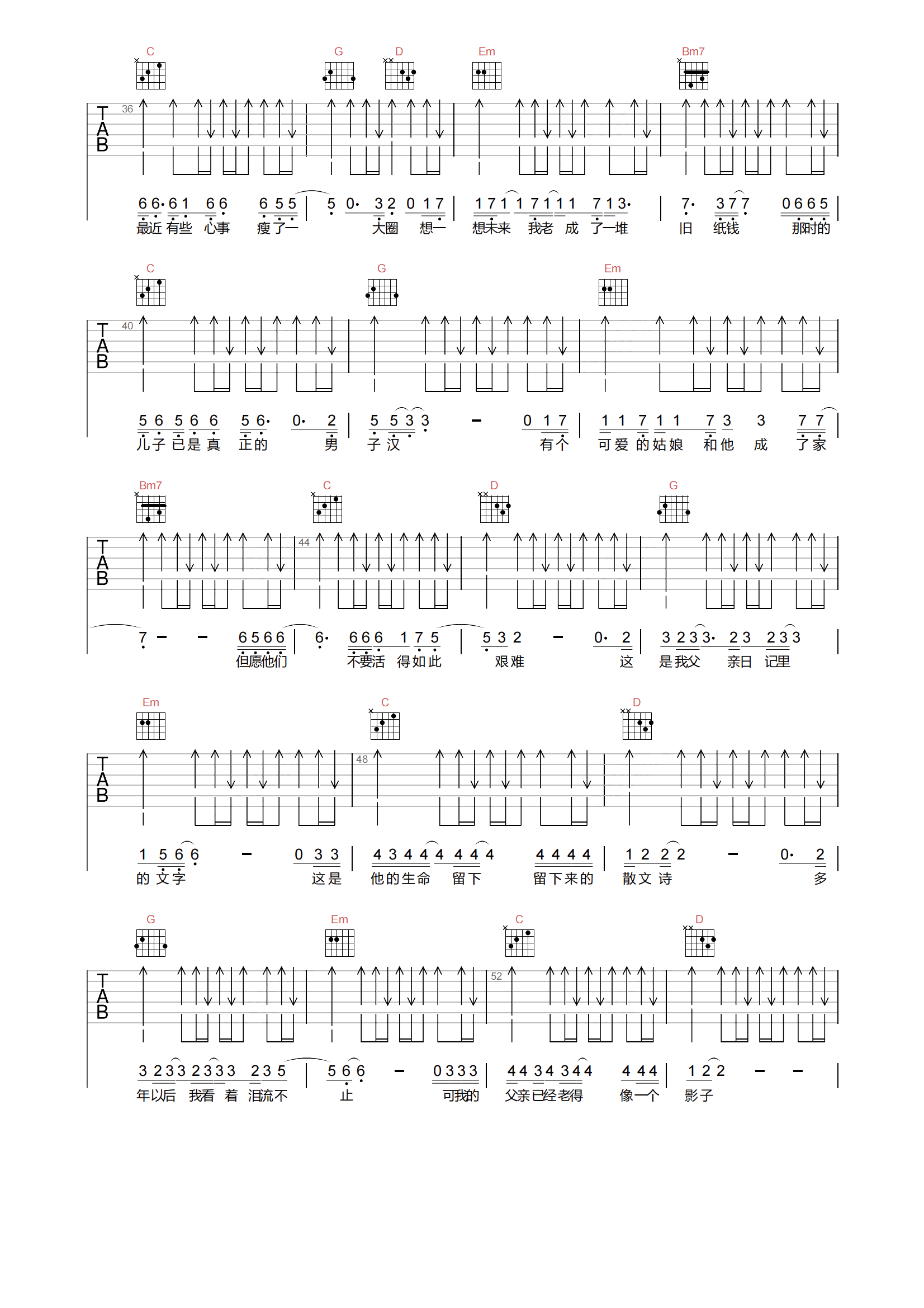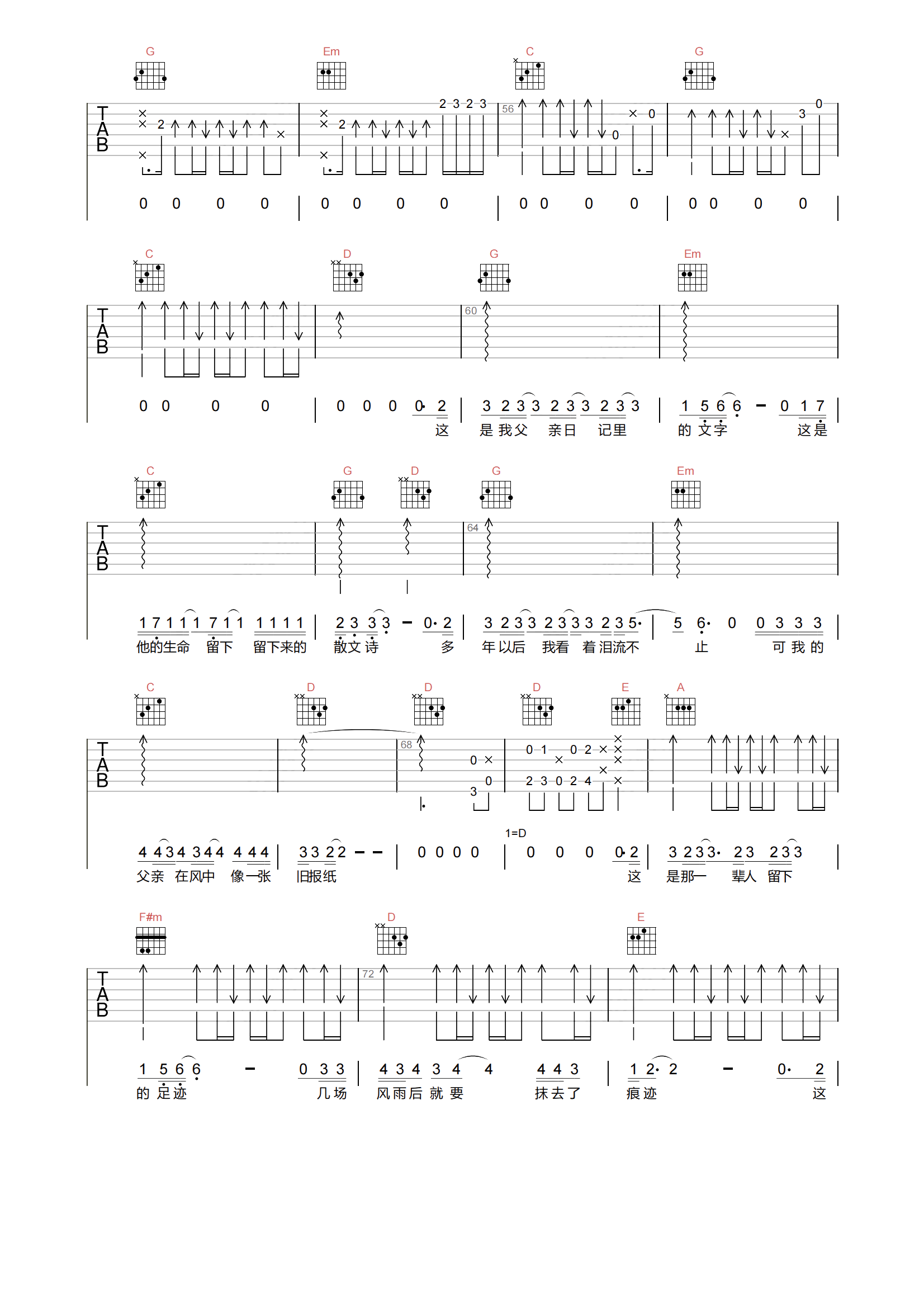 当前位置:琴谱网>吉他弹唱>父亲写的散文诗