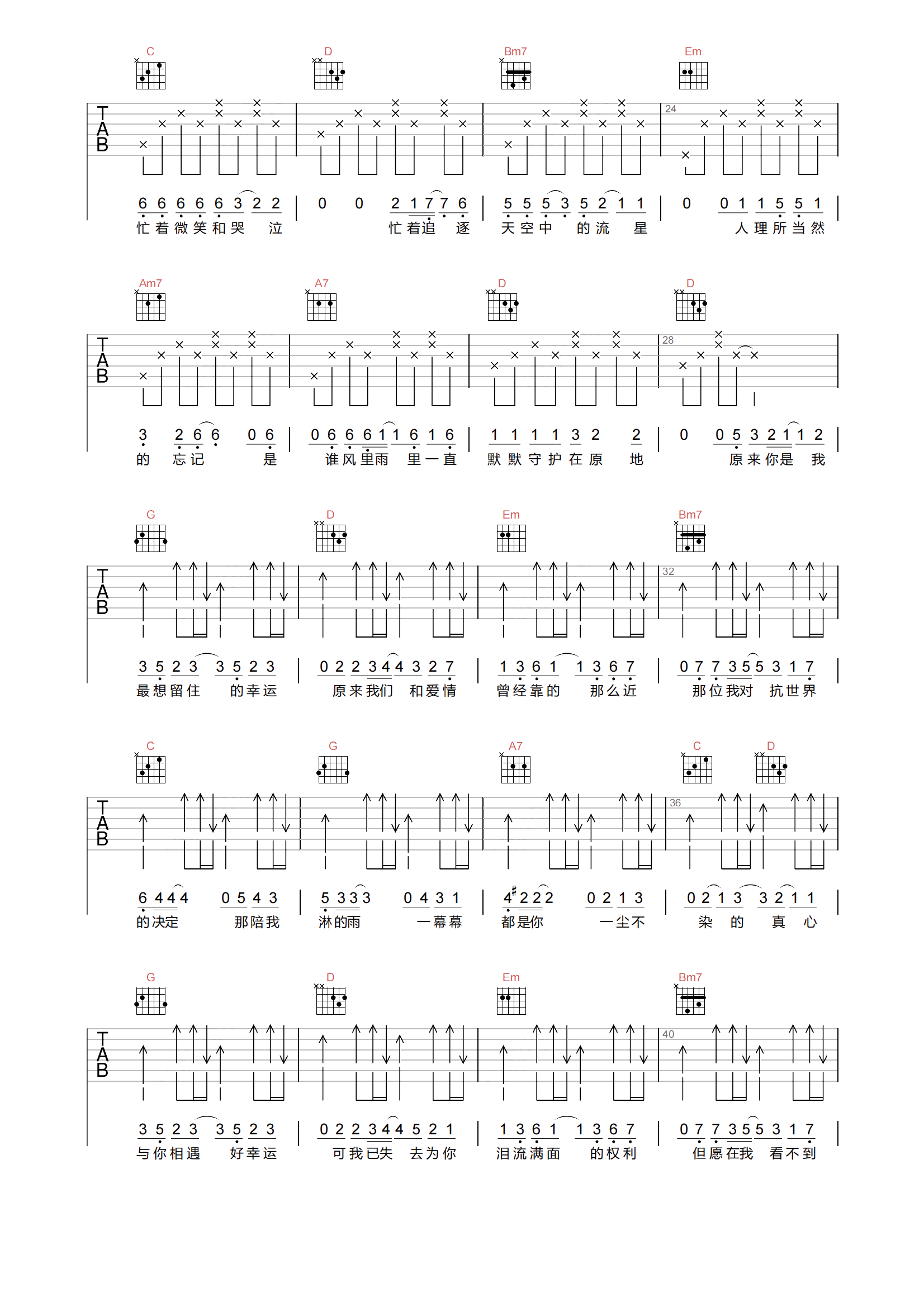 小幸运吉他谱 - 简弘亦 - G调吉他弹唱谱 - 原版