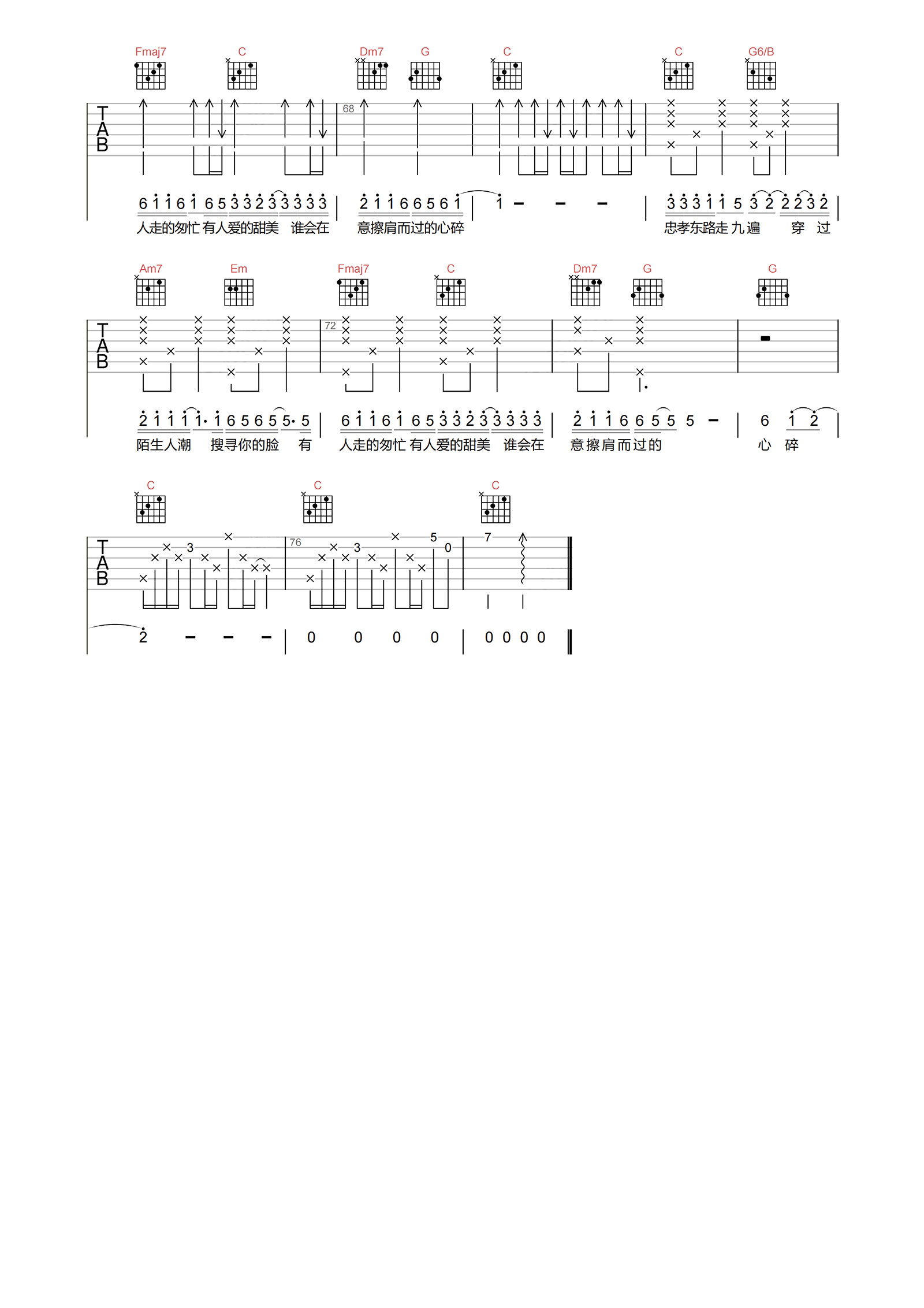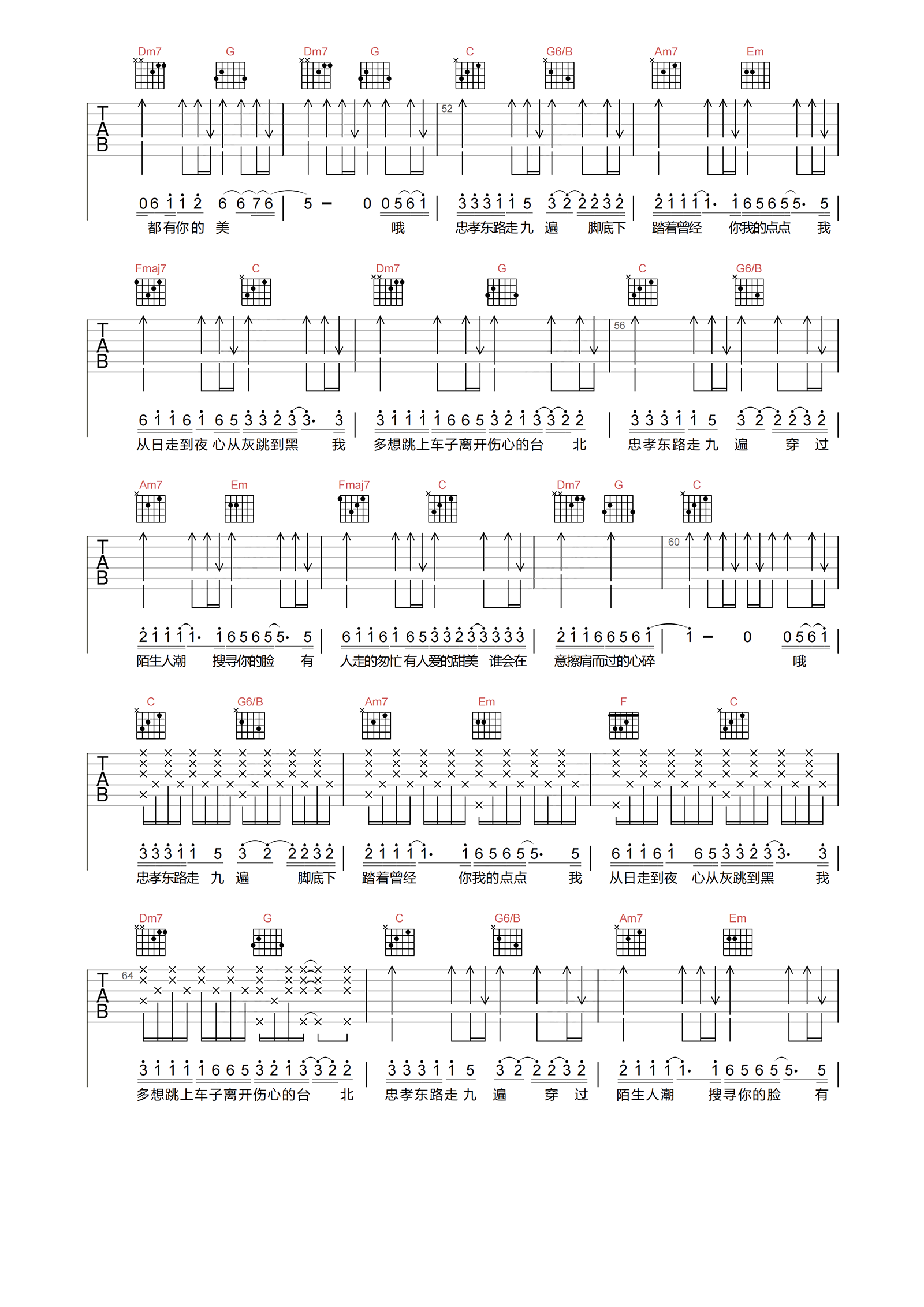 当前位置:琴谱网>吉他弹唱>忠孝东路走九遍