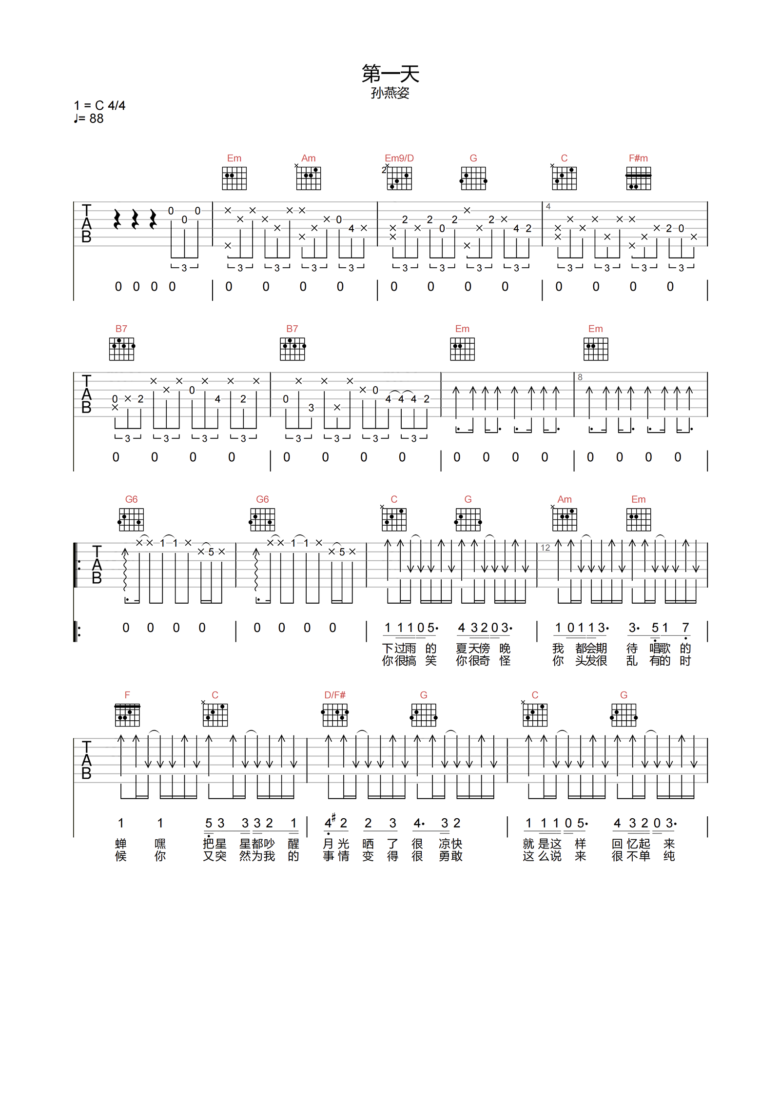 第一天吉他谱 - 孙燕姿 - C调吉他弹唱谱 - 原版