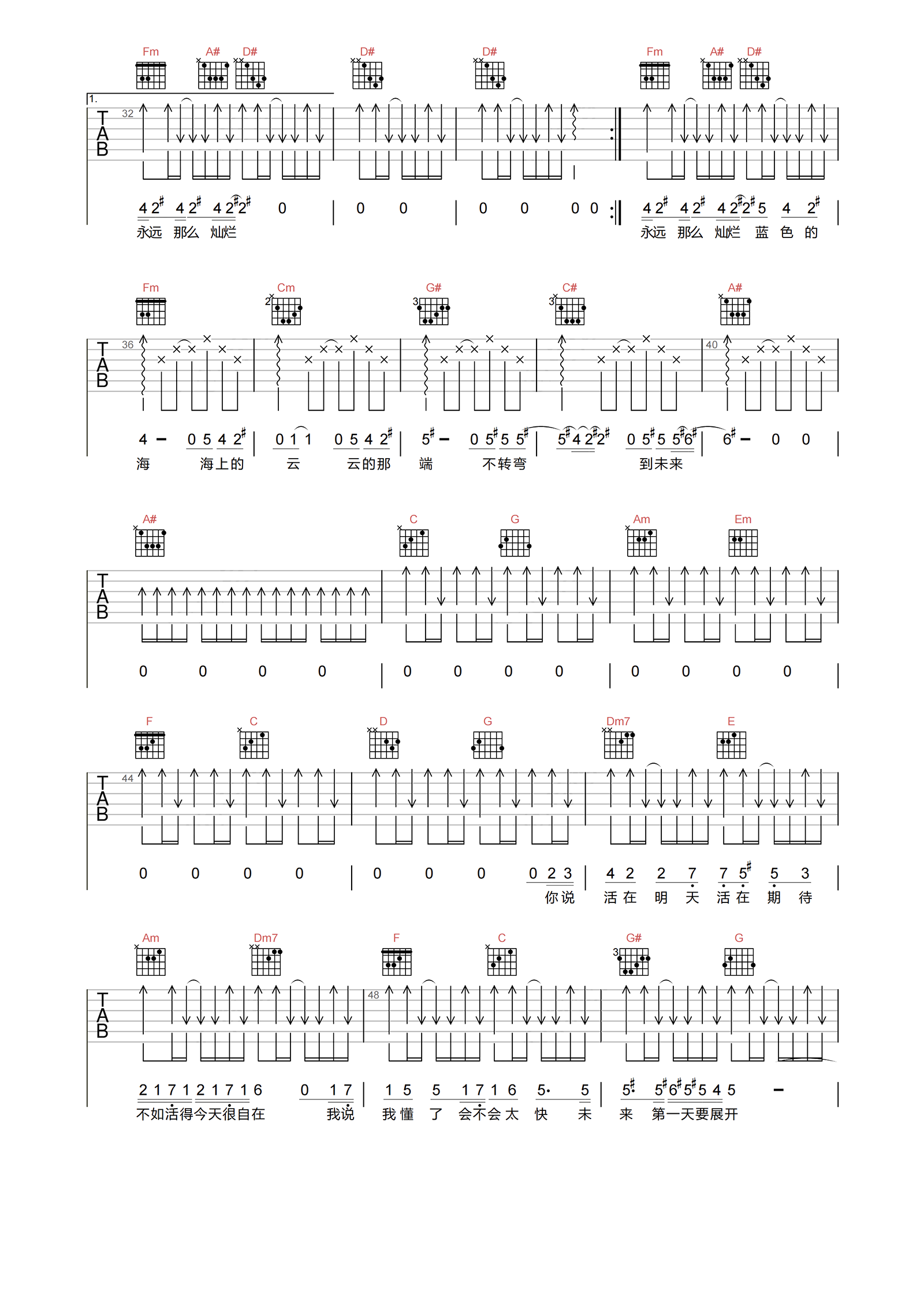 当前位置:琴谱网>吉他弹唱>第一天