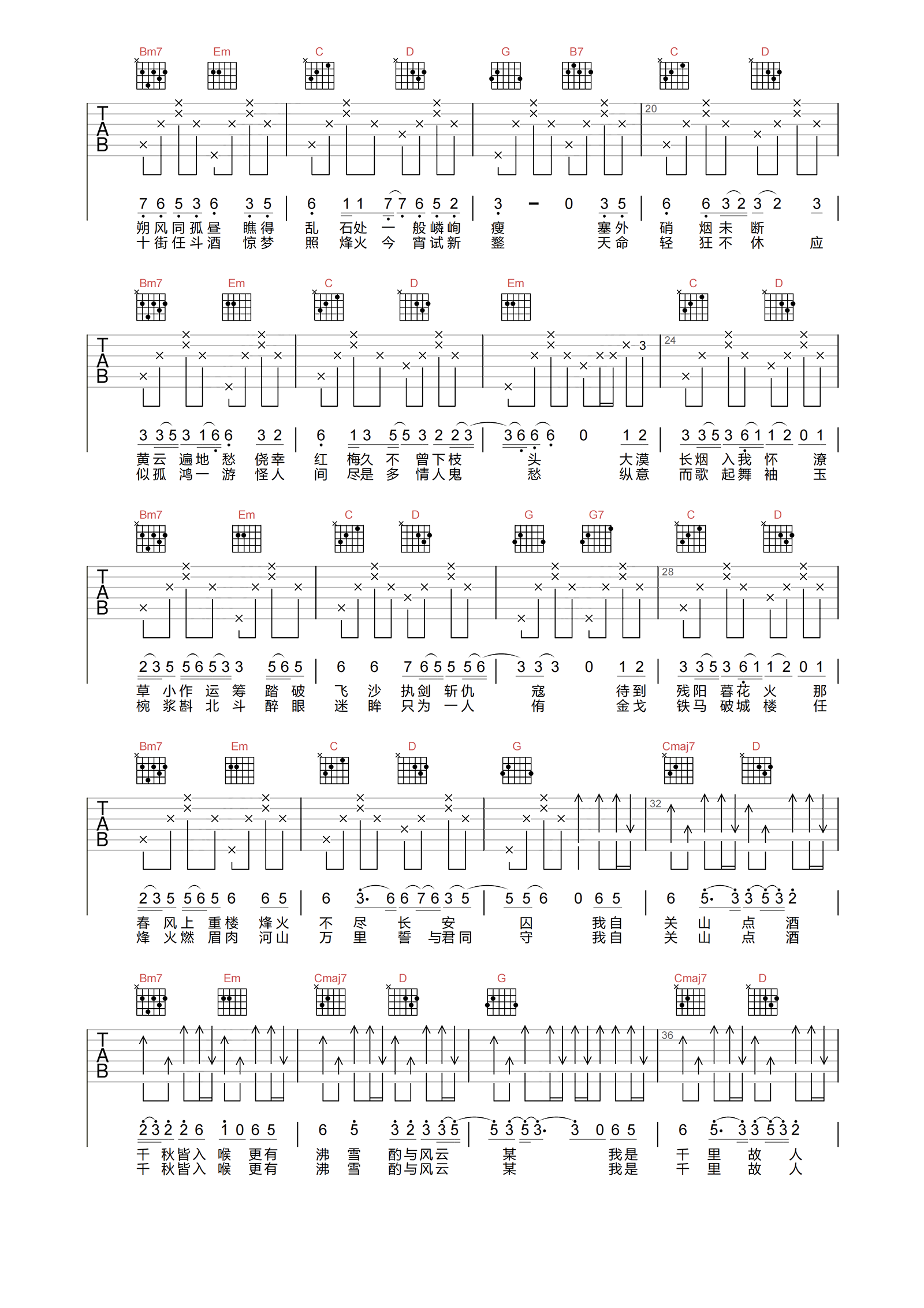 曲谱介绍: 关山酒吉他谱,小魂翻唱的男声版古风歌曲,随着曲风威武霸气伴奏,曲子里头描绘的关山酒会令人联想起边塞和边疆故事,有种浓浓的保家卫国的人文情怀由然而生、将士们一展抱负,为国捐躯一战、不畏飞雪满天、挥剑战场的场景闪现眼前。 《关山酒》吉他弹唱谱,选用G调指法,弹唱速度控制在84拍每分钟,节奏4/4拍,带前奏按原版编配,难度4级较简单。下方附有本谱的PDF版本下载。