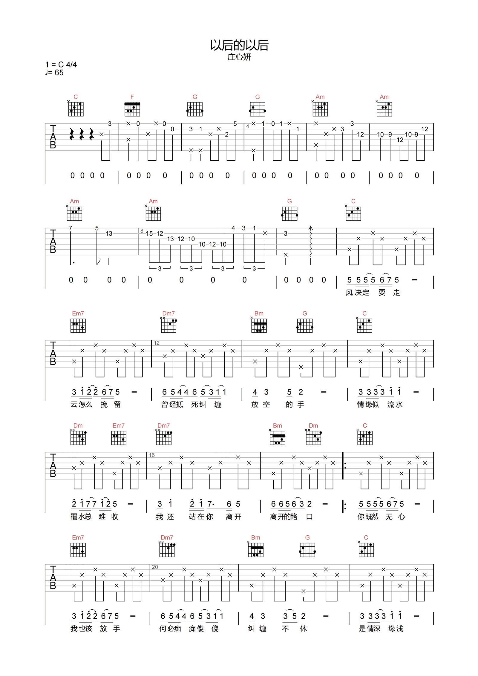 以后的以后吉他谱 - 庄心妍 - C调吉他弹唱谱 - 原版