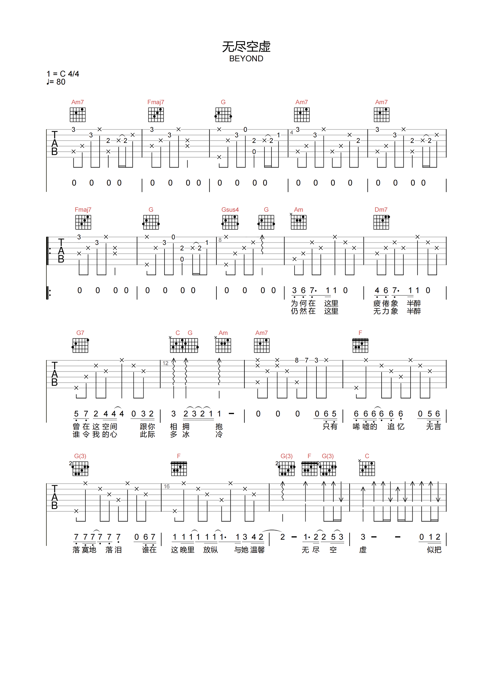 无尽空虚吉他谱 - BEYOND - C调吉他弹唱谱 - 原版