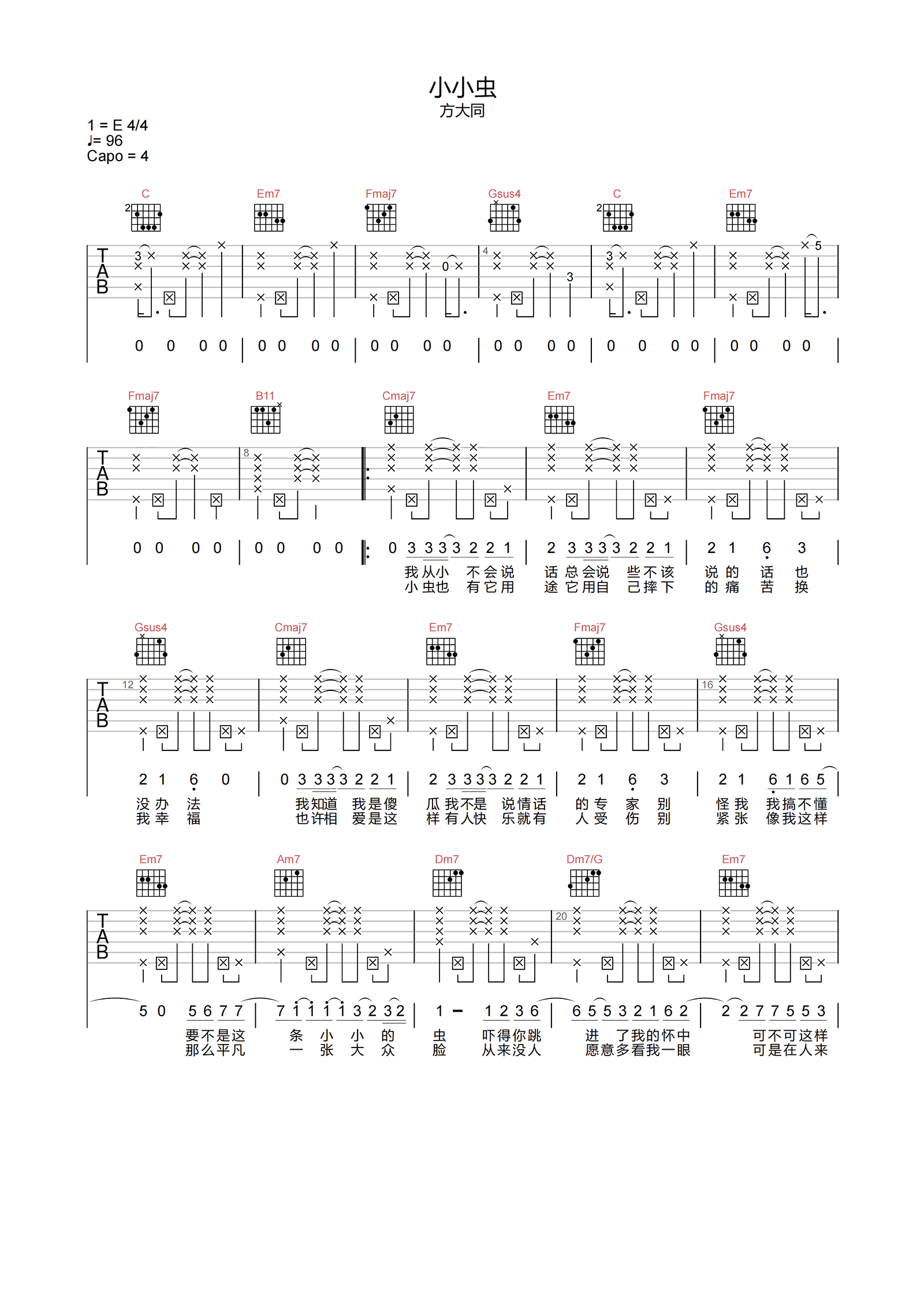 小小虫吉他谱 - 方大同 - C调吉他弹唱谱 - 原版