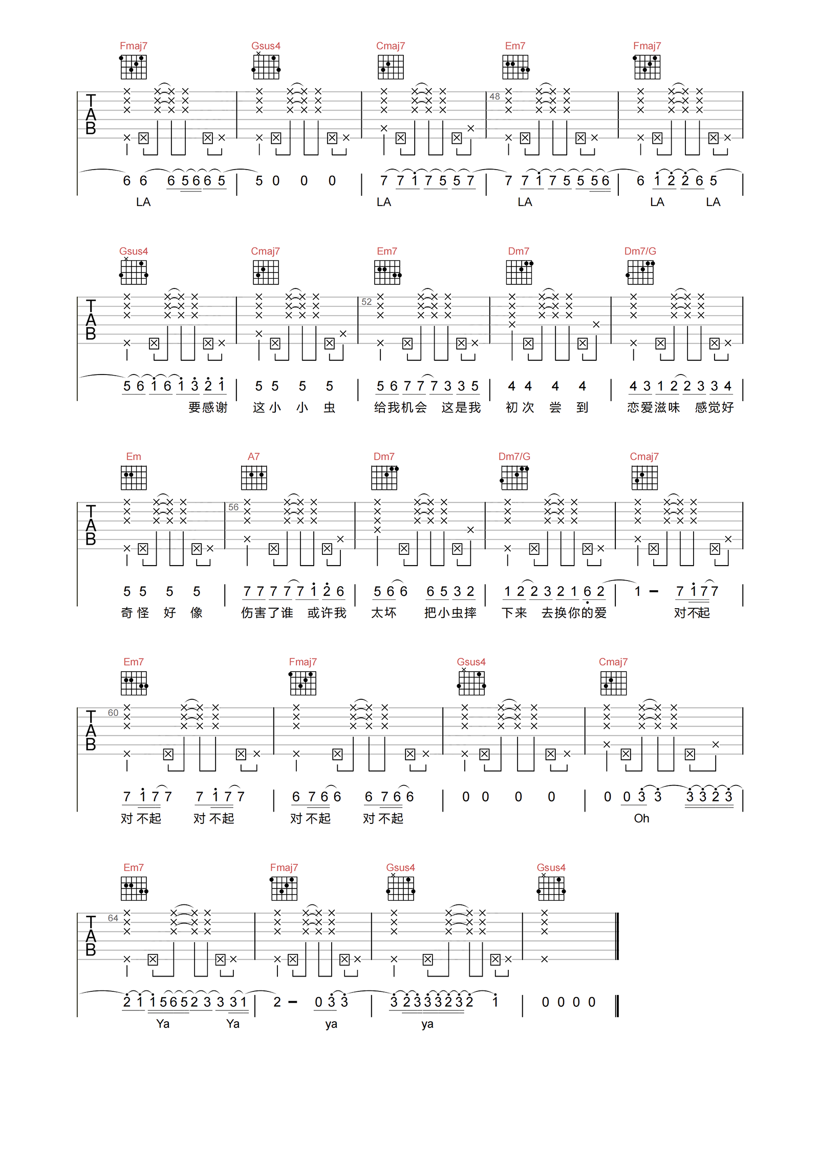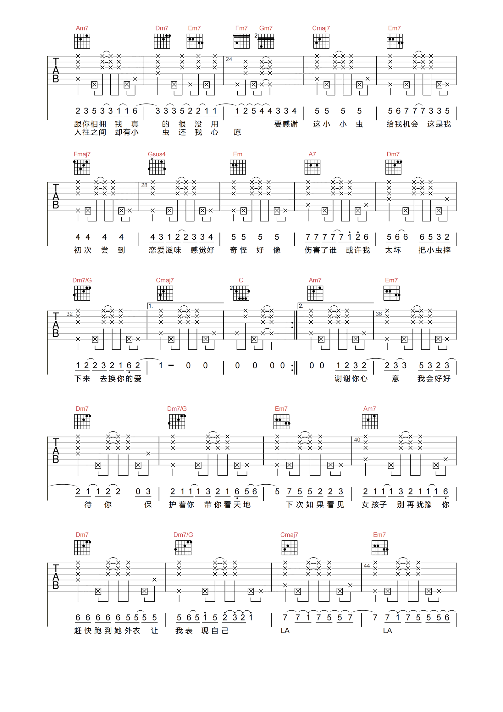 当前位置:琴谱网>吉他弹唱>小小虫
