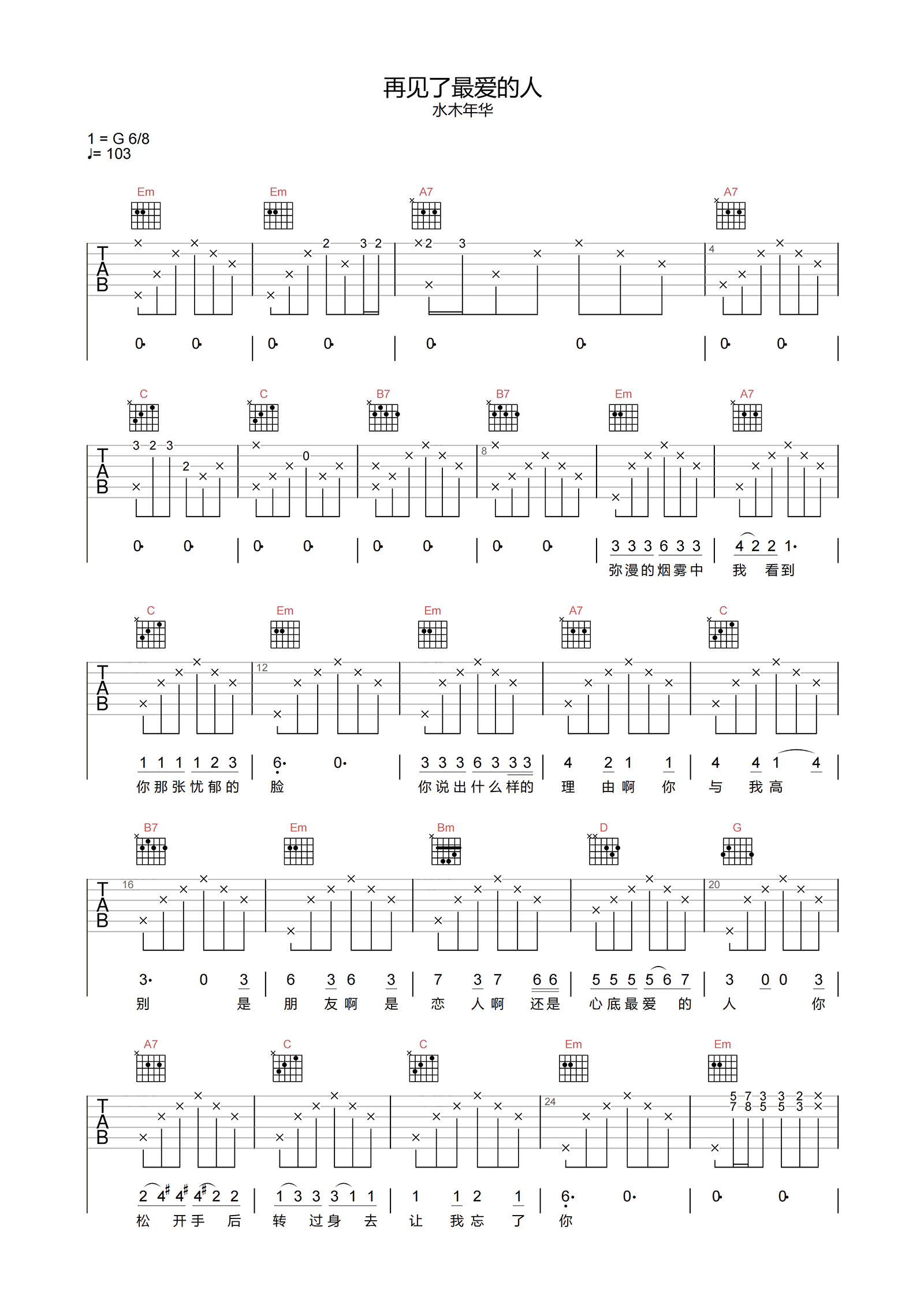 再见了最爱的人吉他谱 - 水木年华 - G调吉他弹唱谱 - 原版