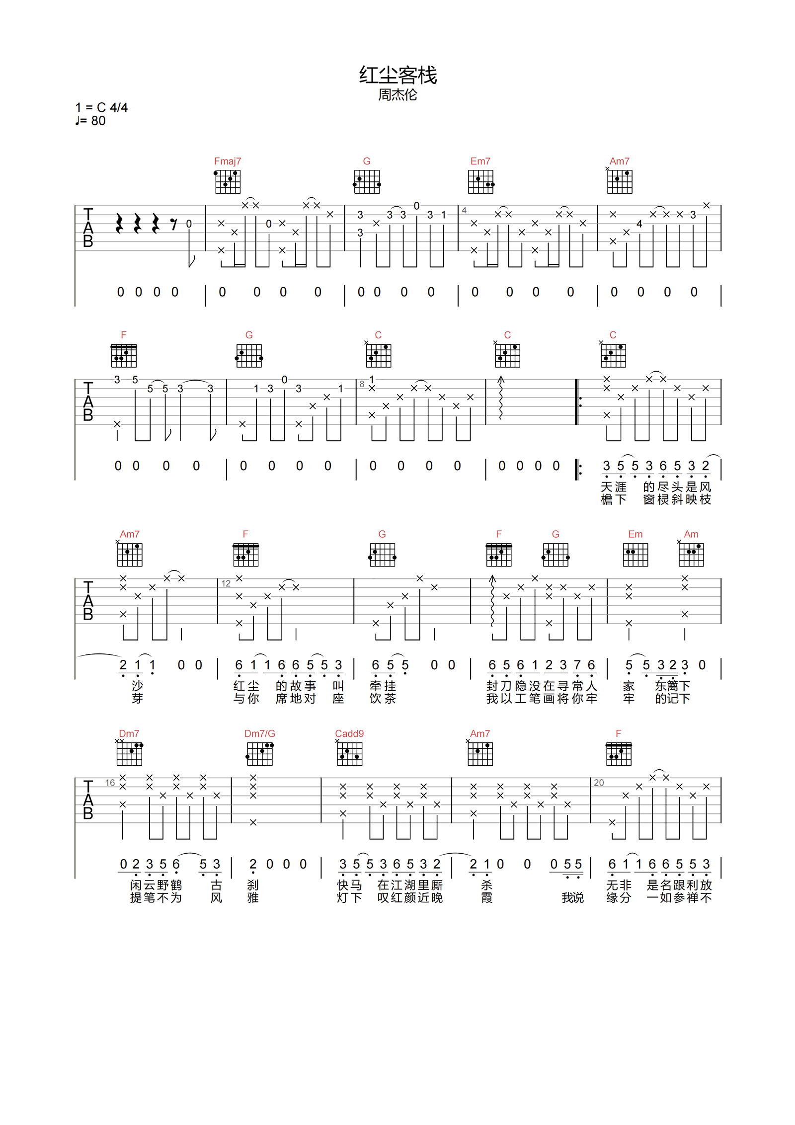 红尘客栈吉他谱 - 周杰伦 - C调吉他弹唱谱 - 原版