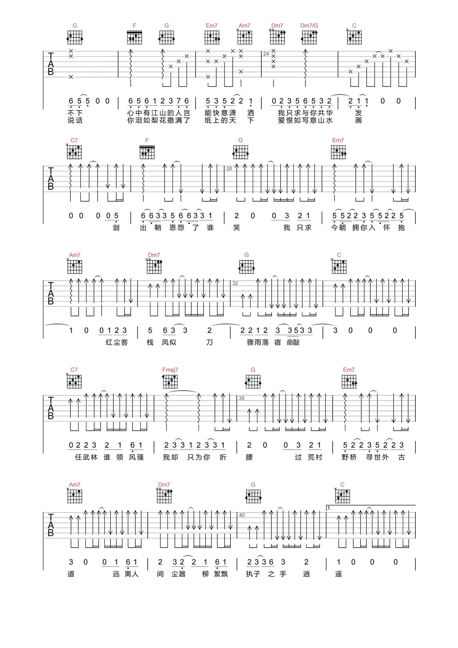 当前位置:琴谱网>吉他弹唱>红尘客栈