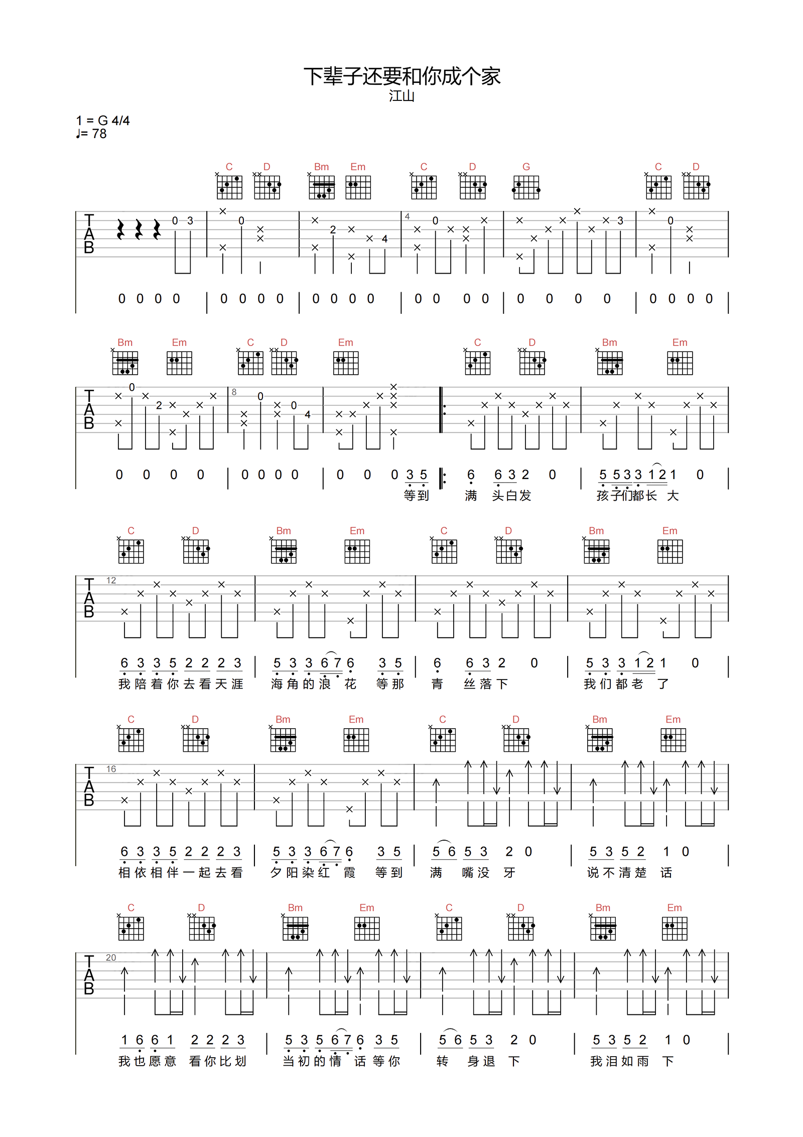 下辈子还要和你成个家吉他谱 - 江山 - G调吉他弹唱谱 - 原版