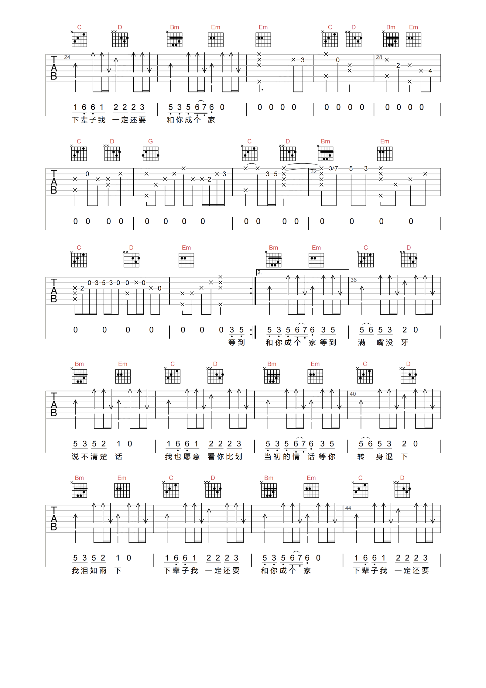 当前位置:琴谱网>吉他弹唱>下辈子还要和你成个家