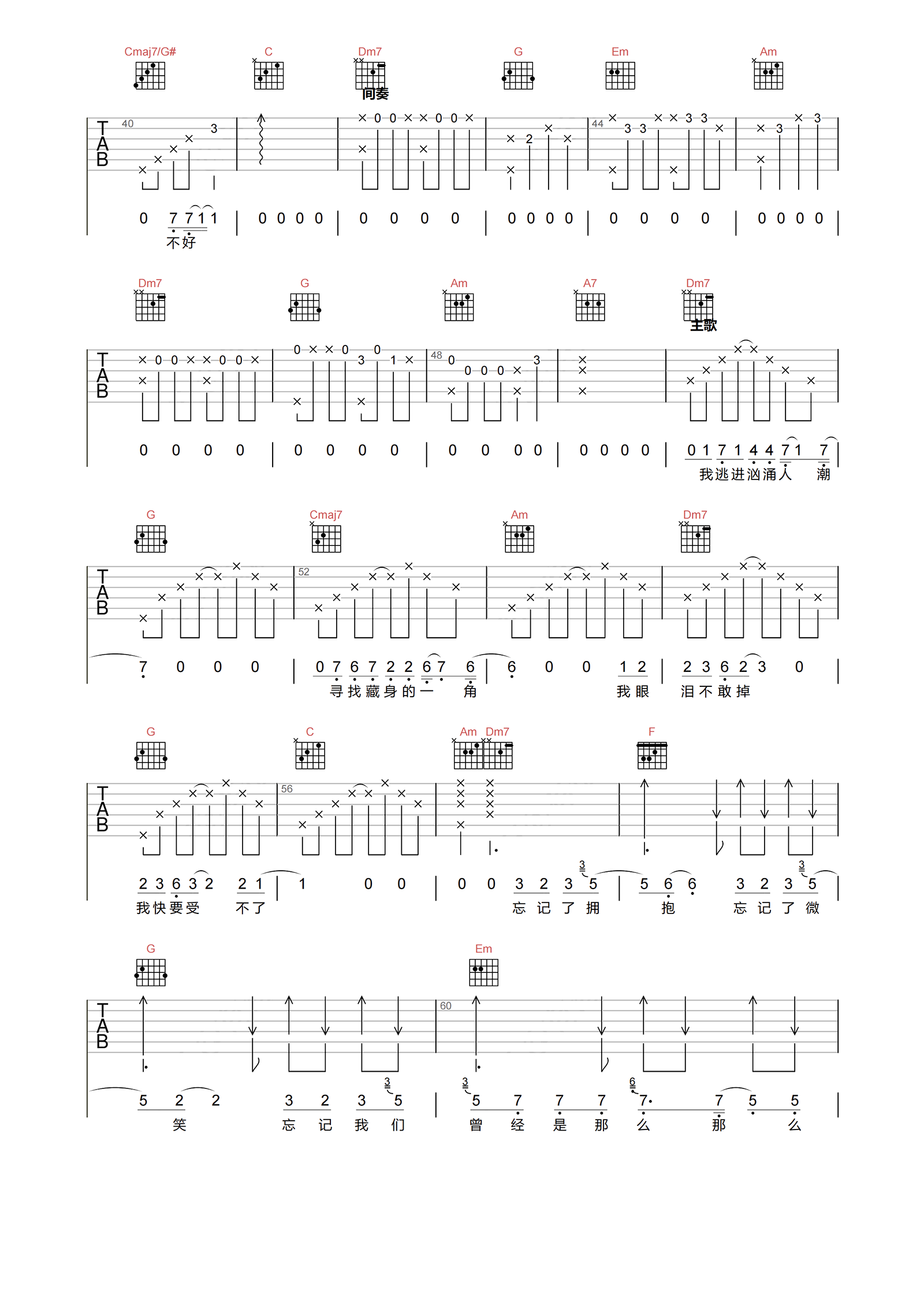 当前位置:琴谱网>吉他弹唱>忘记拥抱