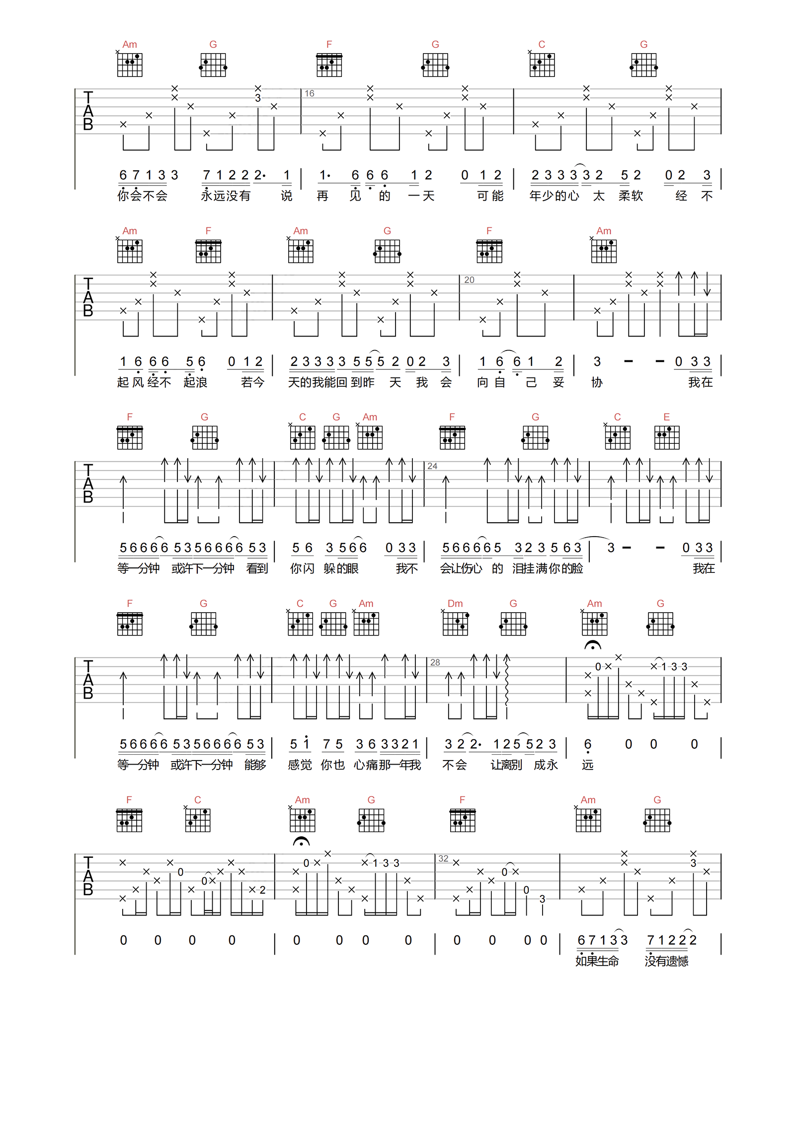 当前位置:琴谱网>吉他弹唱>等一分钟