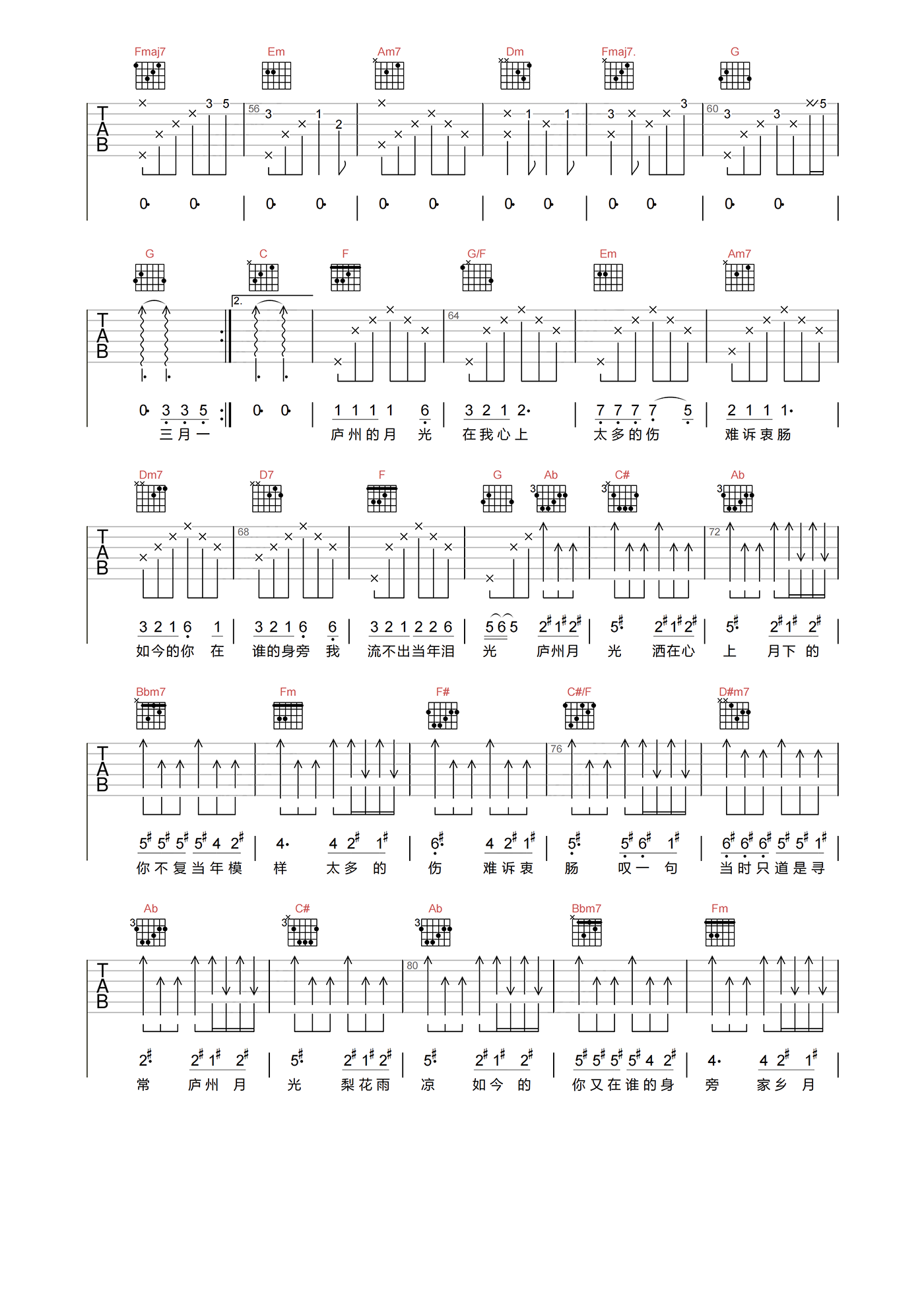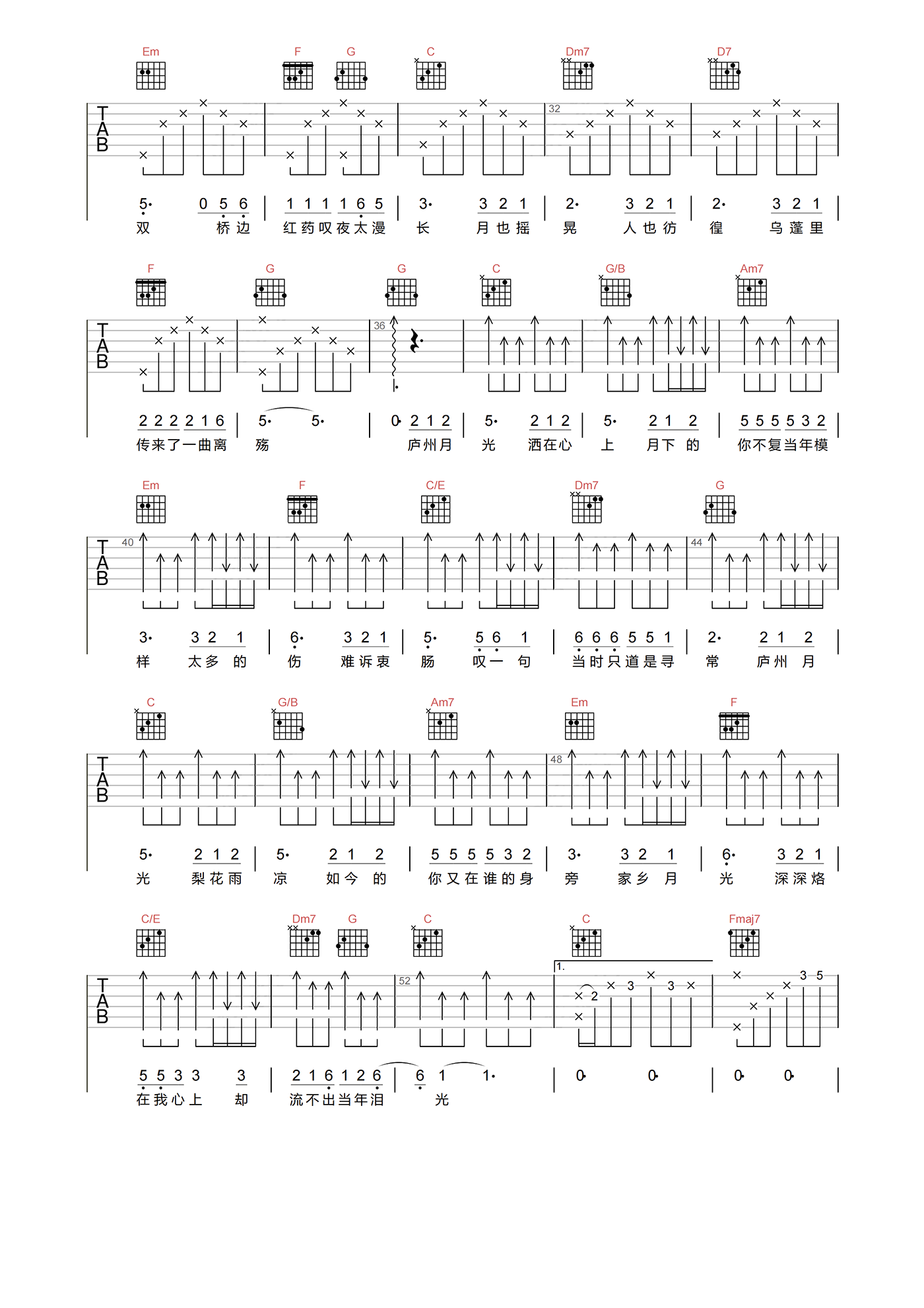 当前位置:琴谱网>吉他弹唱>庐州月
