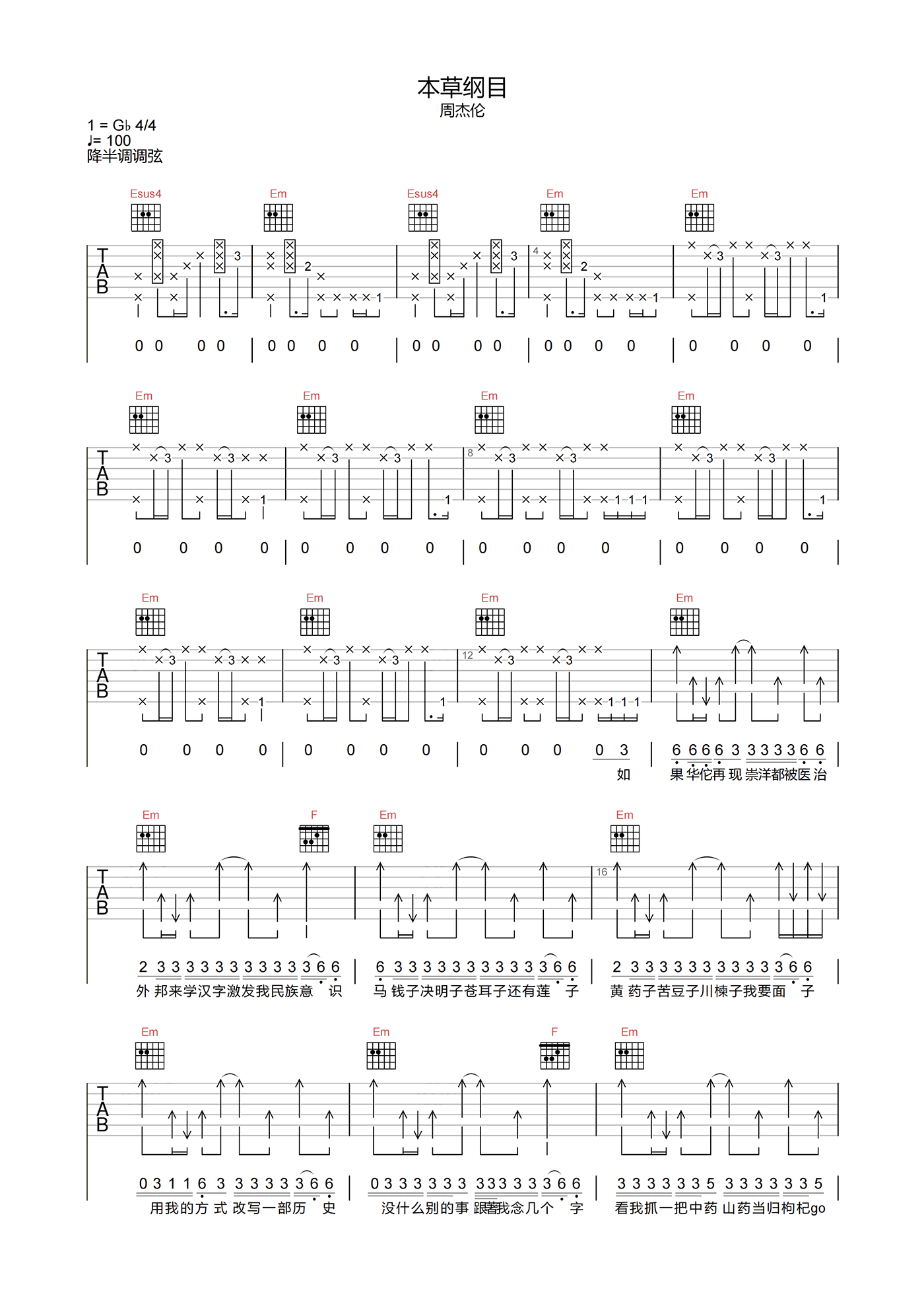 当前位置:琴谱网>吉他弹唱>本草纲目
