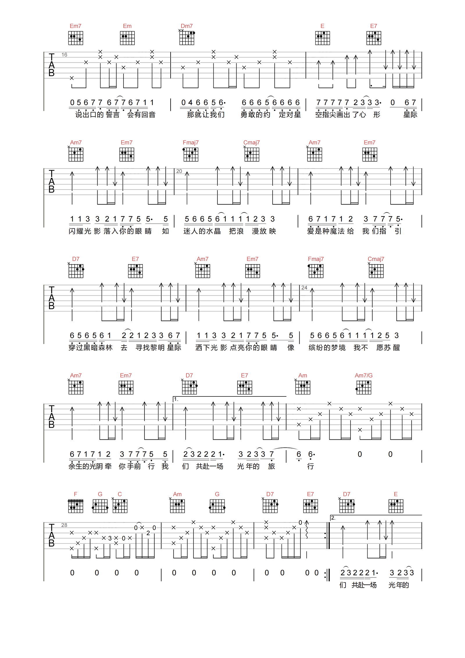 满天星辰不及你吉他谱 - YCCCC - C调吉他弹唱谱 - 原版
