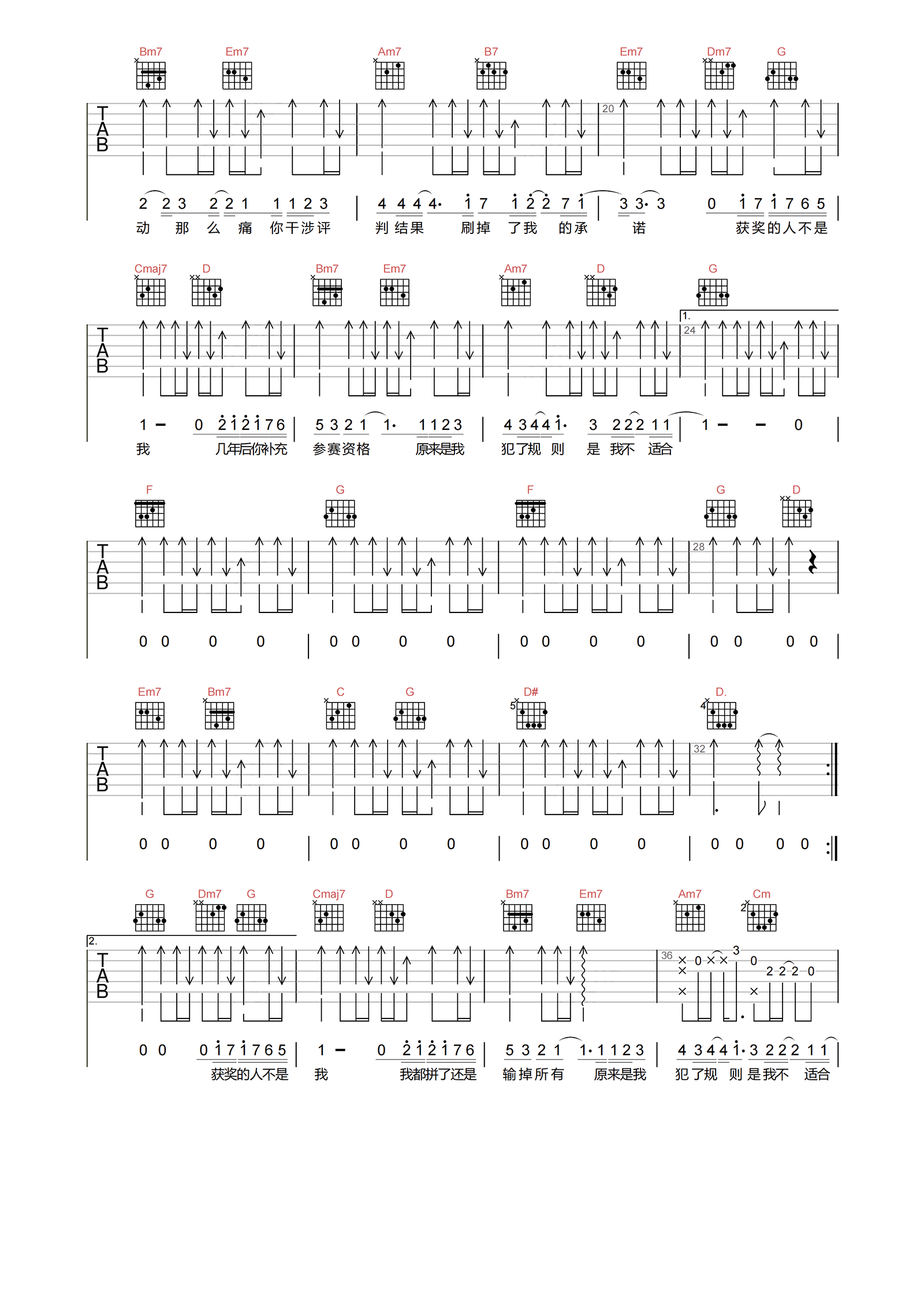 当前位置:琴谱网>吉他弹唱>获奖人