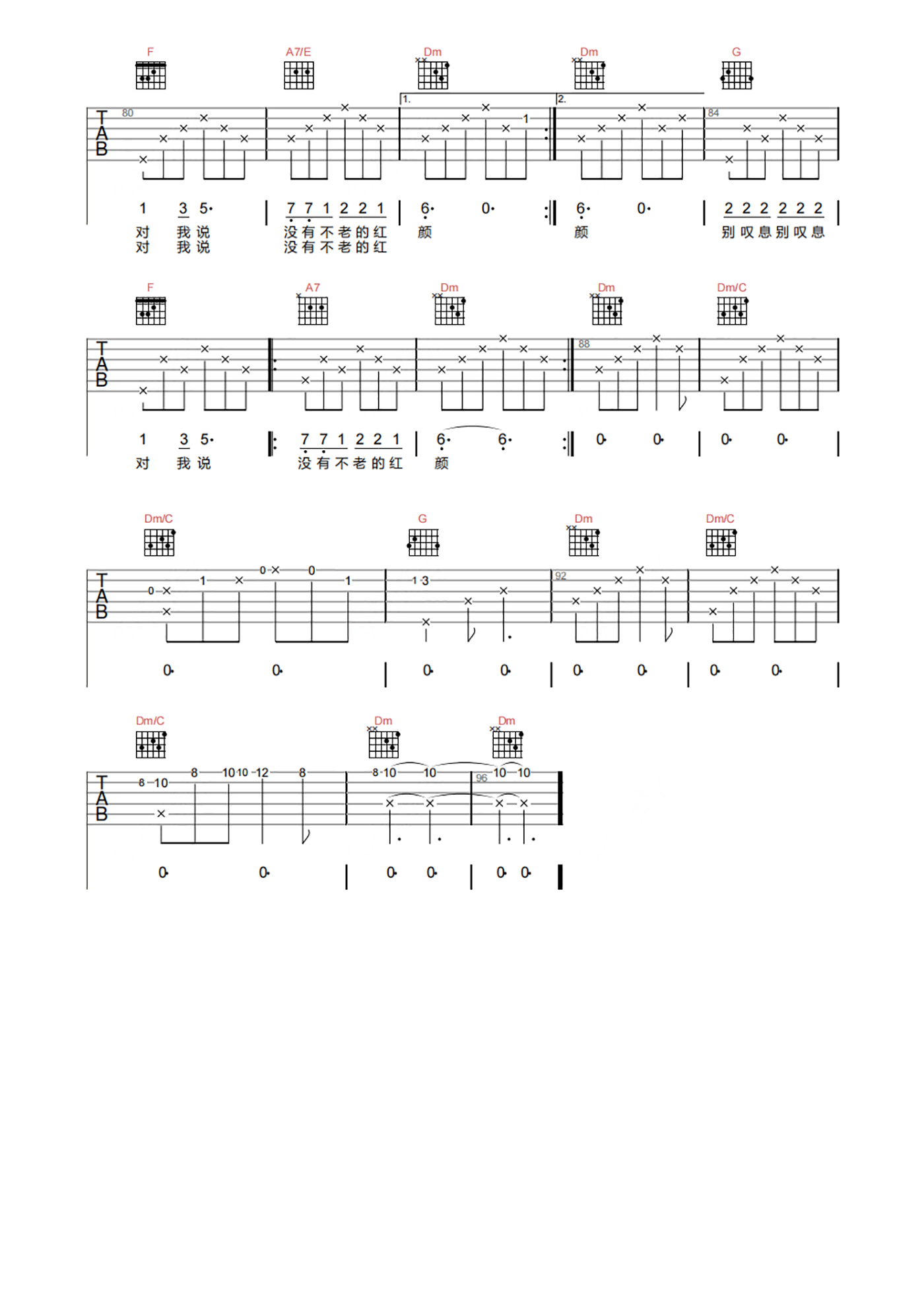 曲谱介绍: 《蝴蝶花》吉他弹唱谱,选用C调指法编配,原调F调,CAPO夹5品可弹回袁嗲哦,速度105拍每分钟,节奏6/8拍,带前奏原版编配。下方附本曲谱的PDF版本下载。