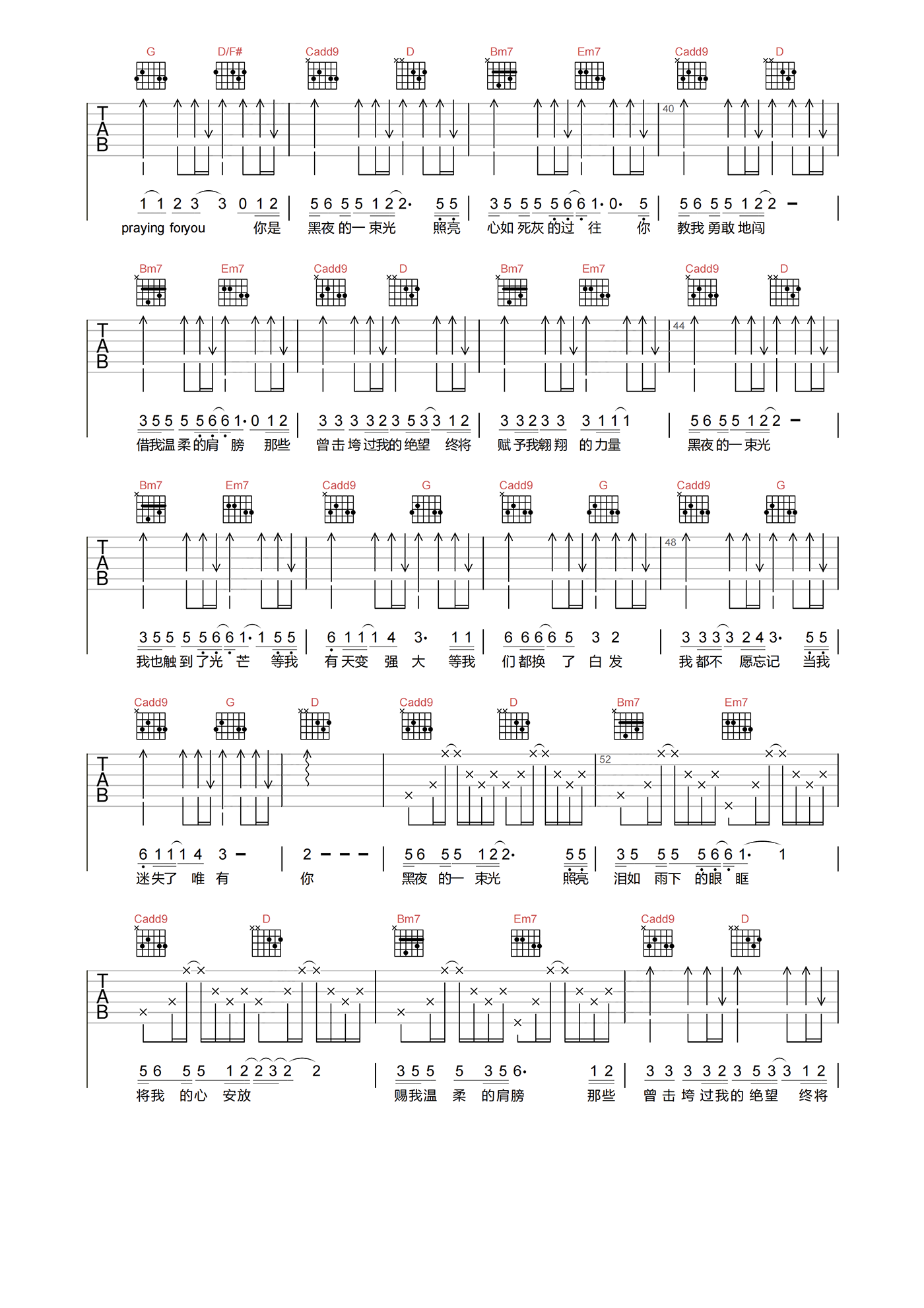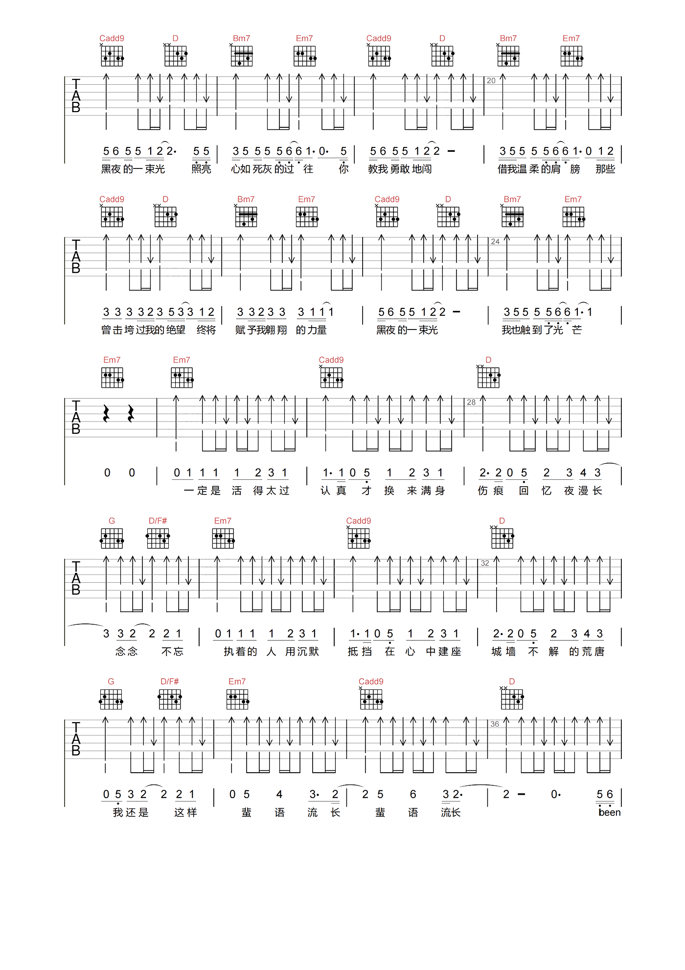 当前位置:琴谱网>吉他弹唱>黑夜一束光