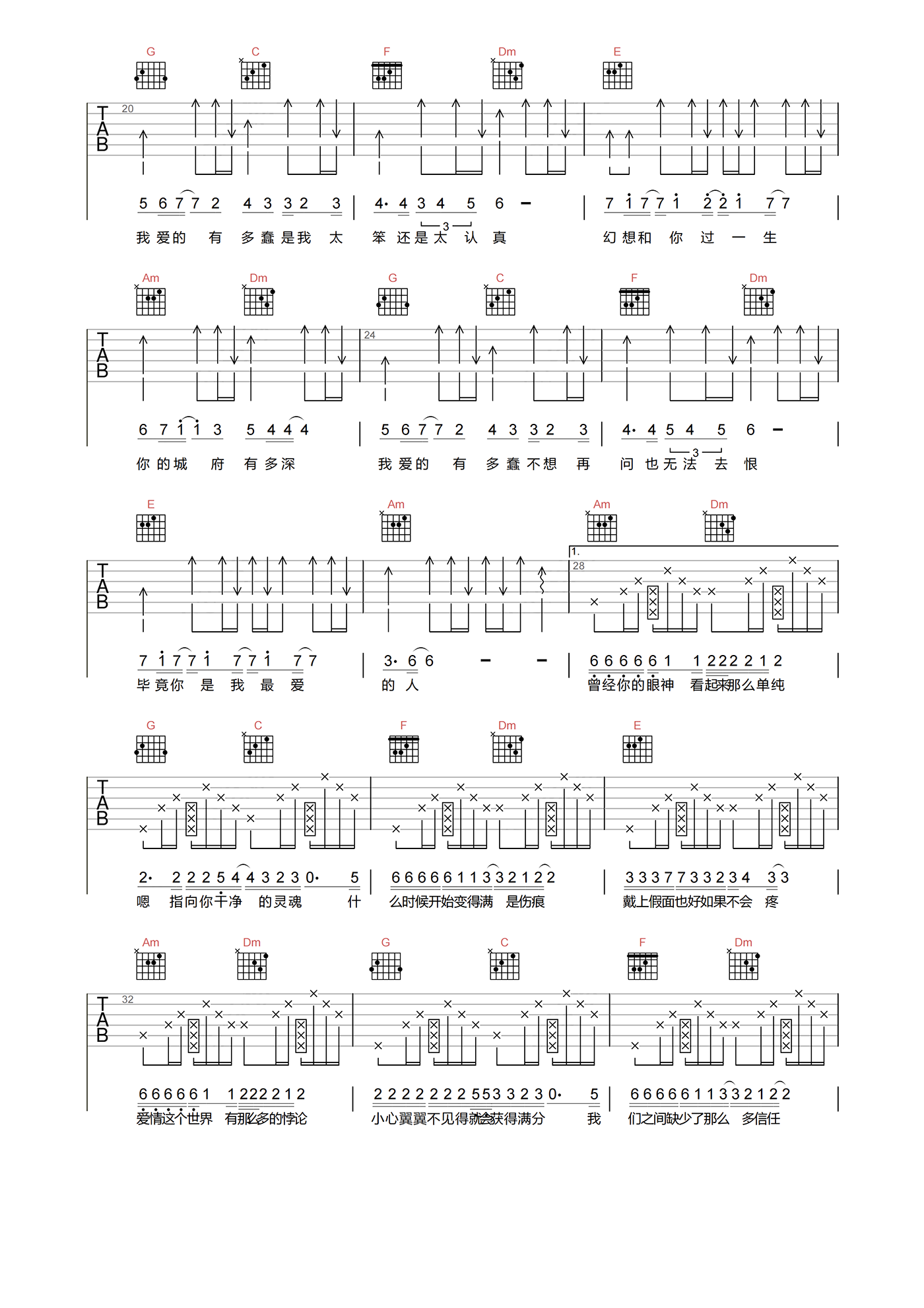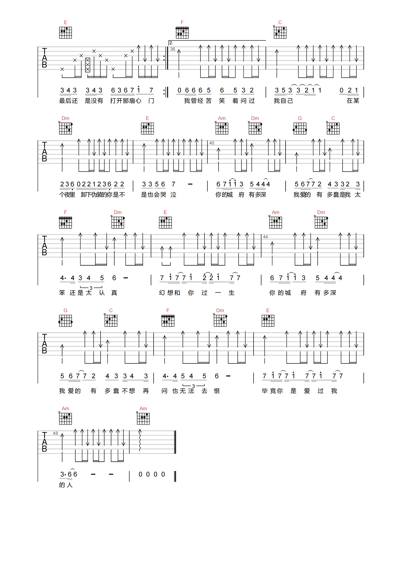当前位置:琴谱网>吉他弹唱>城府
