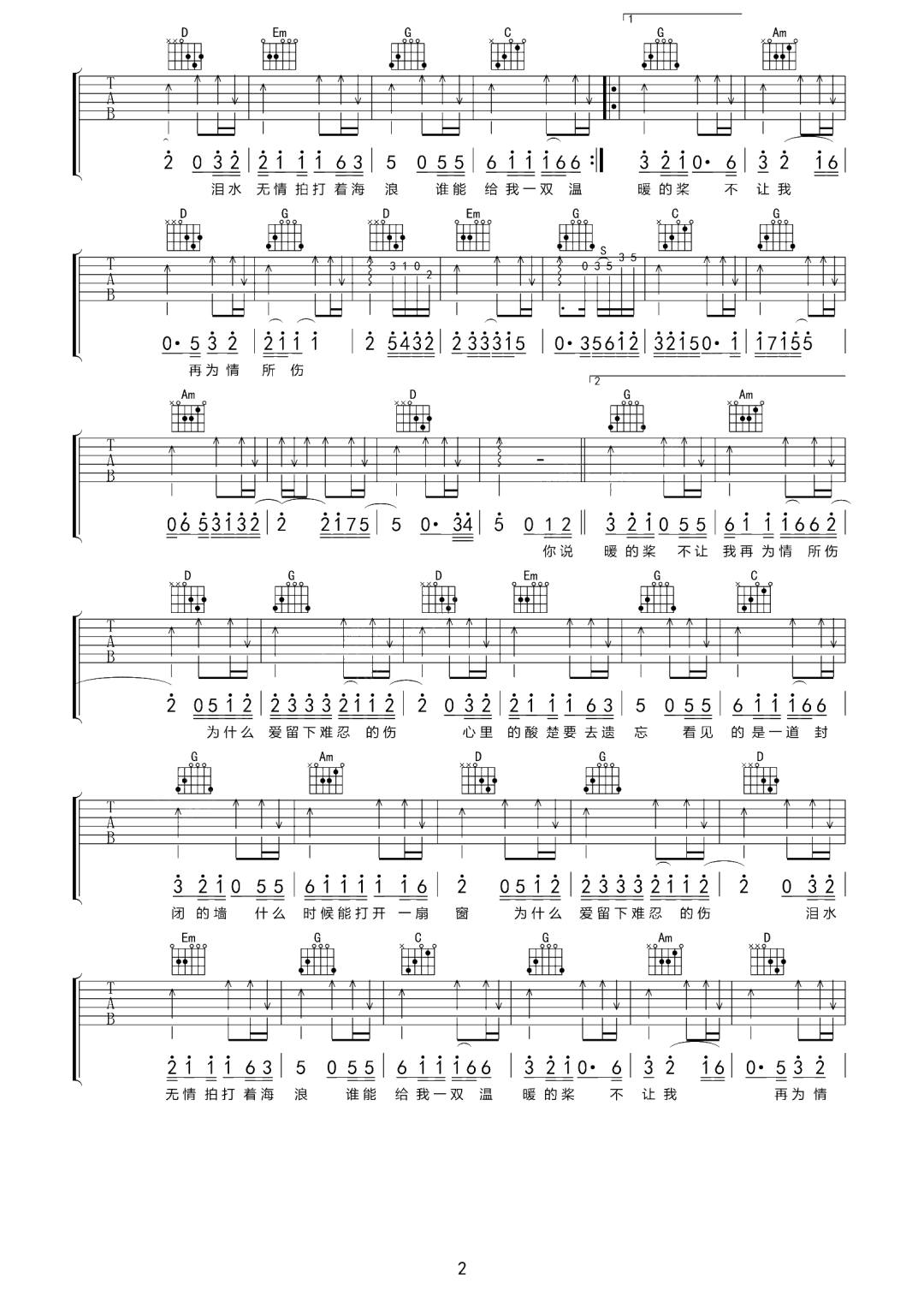 当前位置:琴谱网>吉他弹唱>为情所伤